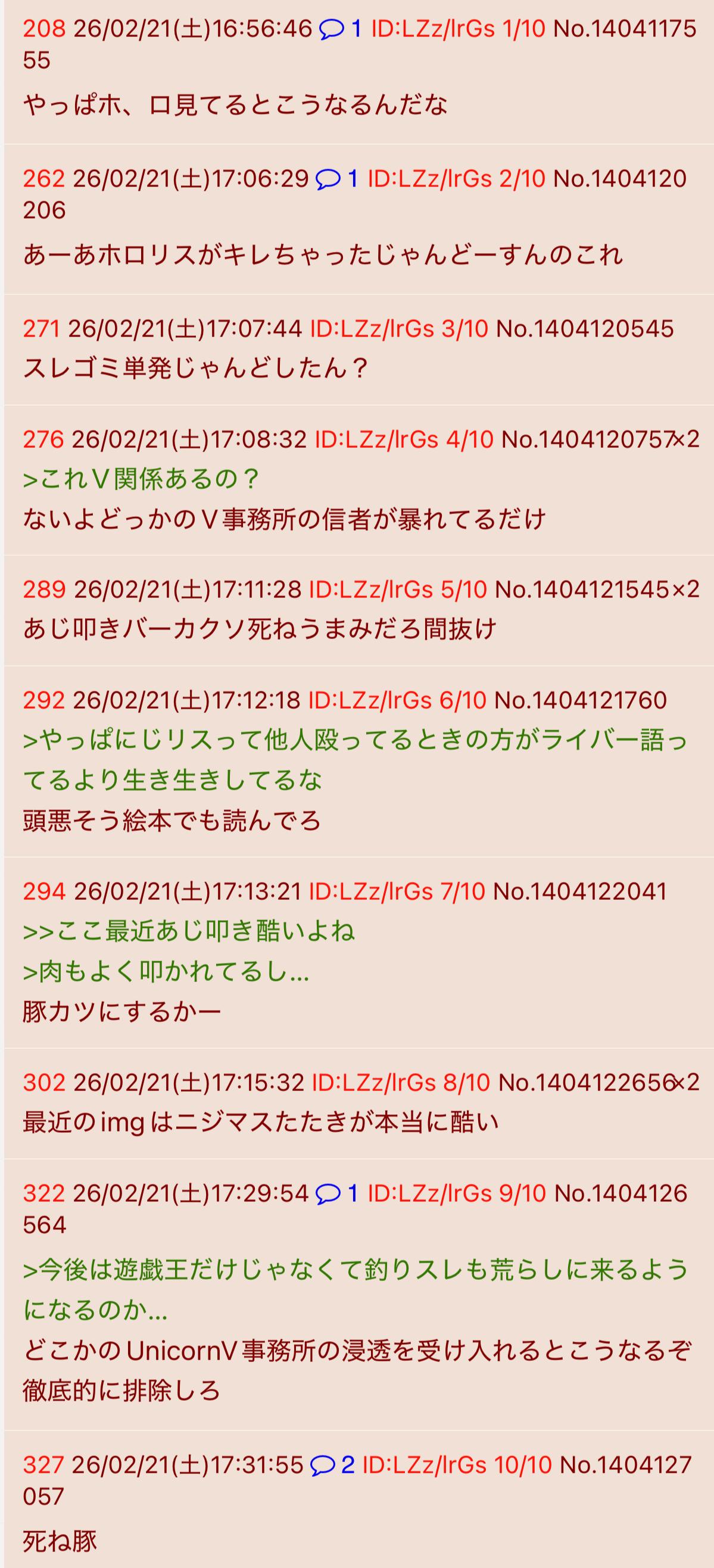 | … | 31826/02/21(土)17:26:00No.1404125515そうだねx1>こいつにじさんじだろ |