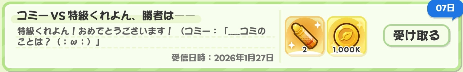 | … | 2626/02/21(土)16:37:19 ID:w.XodTTYNo.1404112437+トリッカル…新しいコンテンツが出るたび新しいもちほっぺが出てくるのに別にそれに合わせて手に入るわけじゃない… |