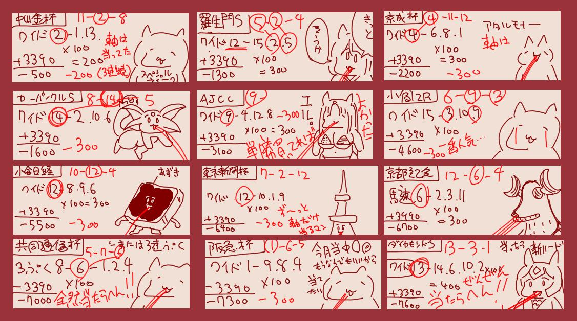 | … | 3126/02/21(土)16:45:54 ID:FjLYBy1sNo.1404114667そうだねx1>今日の収支です!珍しくどちらの重賞レースでも当てることができました!お陰で平場のマイナス取り戻せてプラスです! |