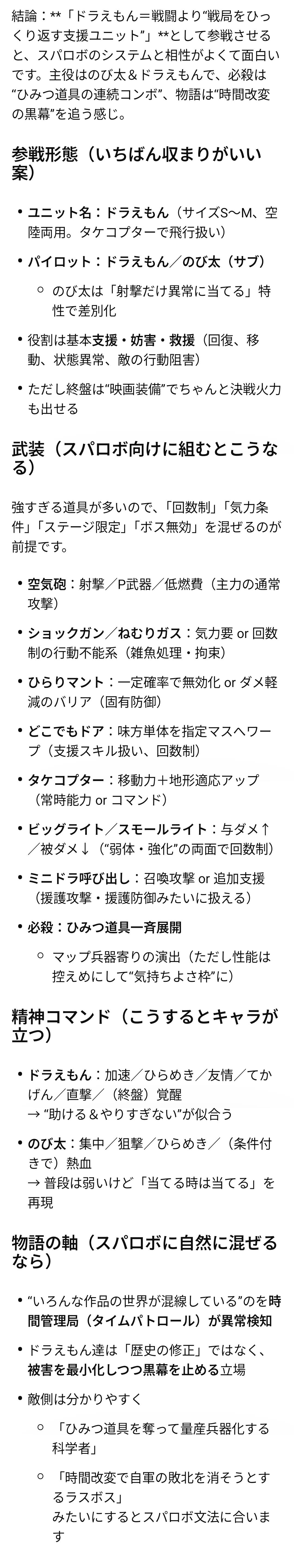 | … | 326/02/21(土)16:06:51No.1404105027そうだねx6スパロボに参戦した時のドラえもんの武器一覧はもういいから! |