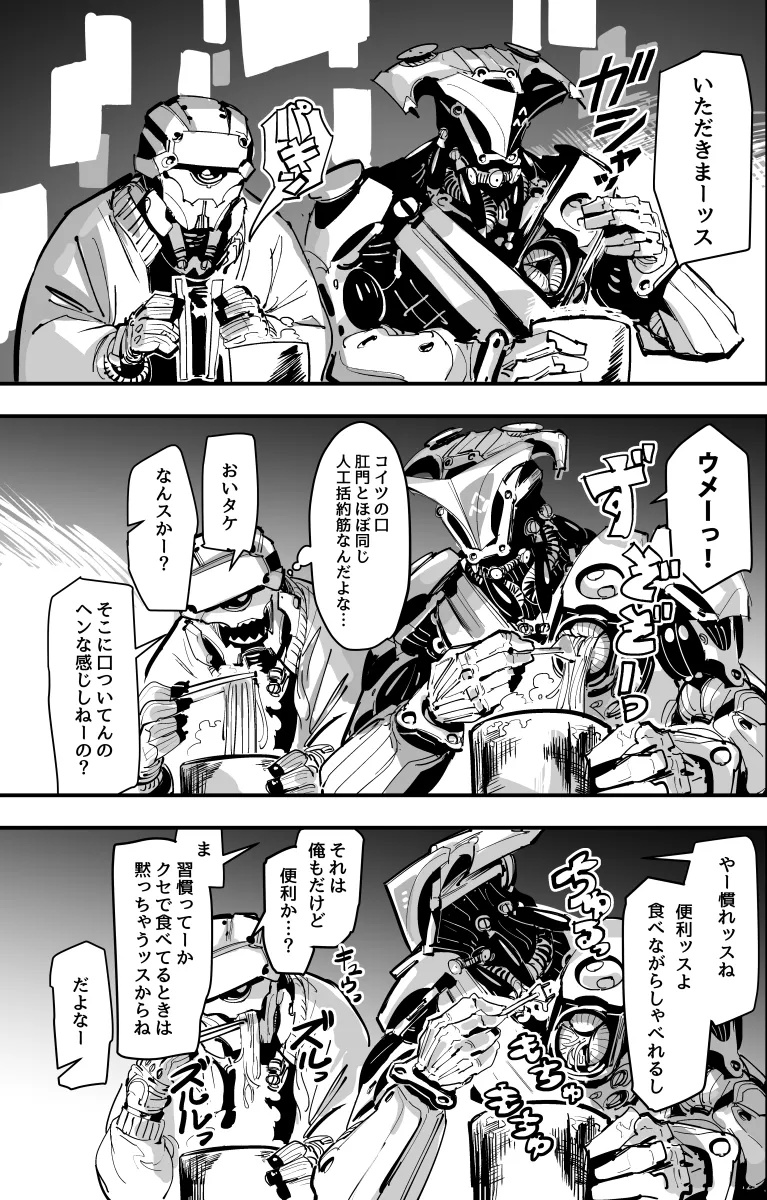 | … | 5726/02/21(土)19:12:04No.1404158099そうだねx1>サイボーグ用の外食って栄養ペーストとそれに風味を付けるフレーバーを同時に吸引みたいな感じになるんだろうか |