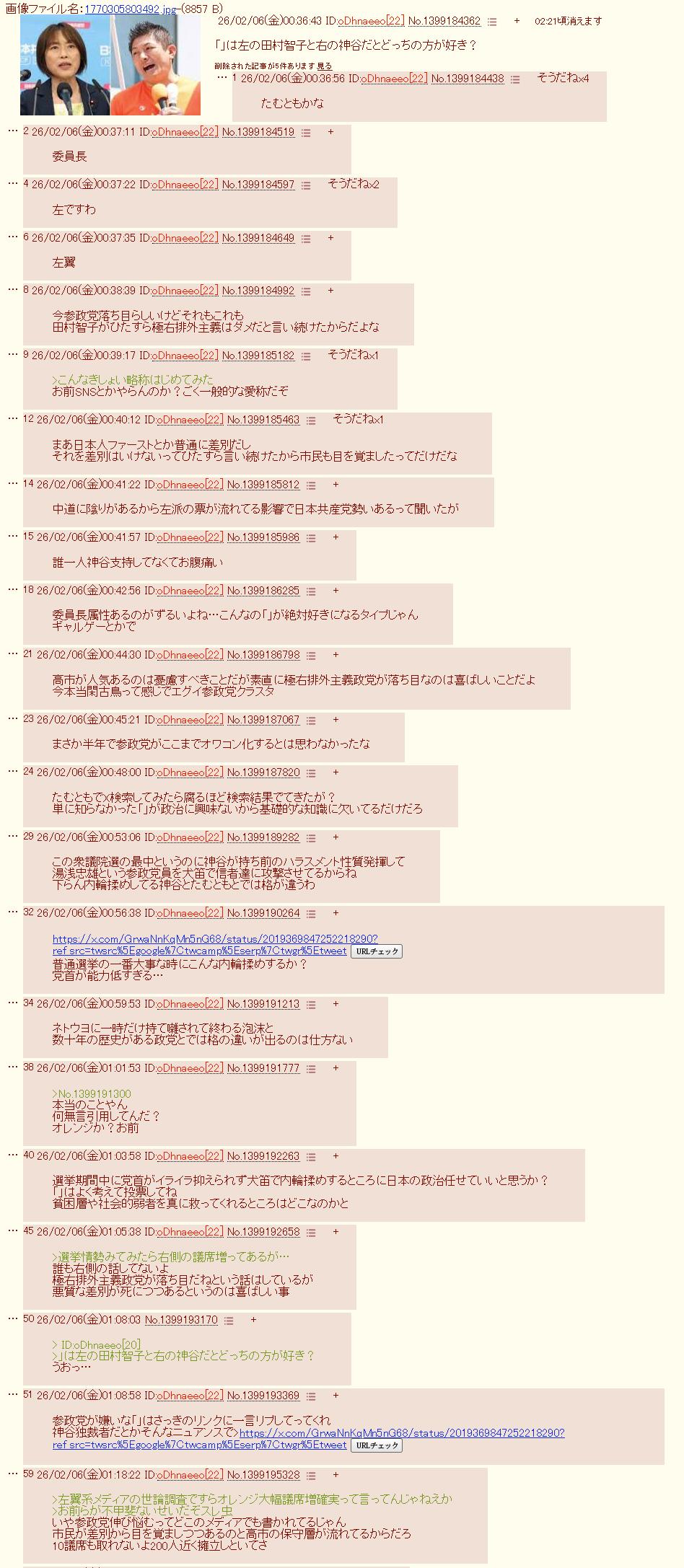 | … | 8926/02/21(土)20:39:40 ID:XHxnI6a.No.1404192348そうだねx5>忖度なしの順位予想みろよみろよ |