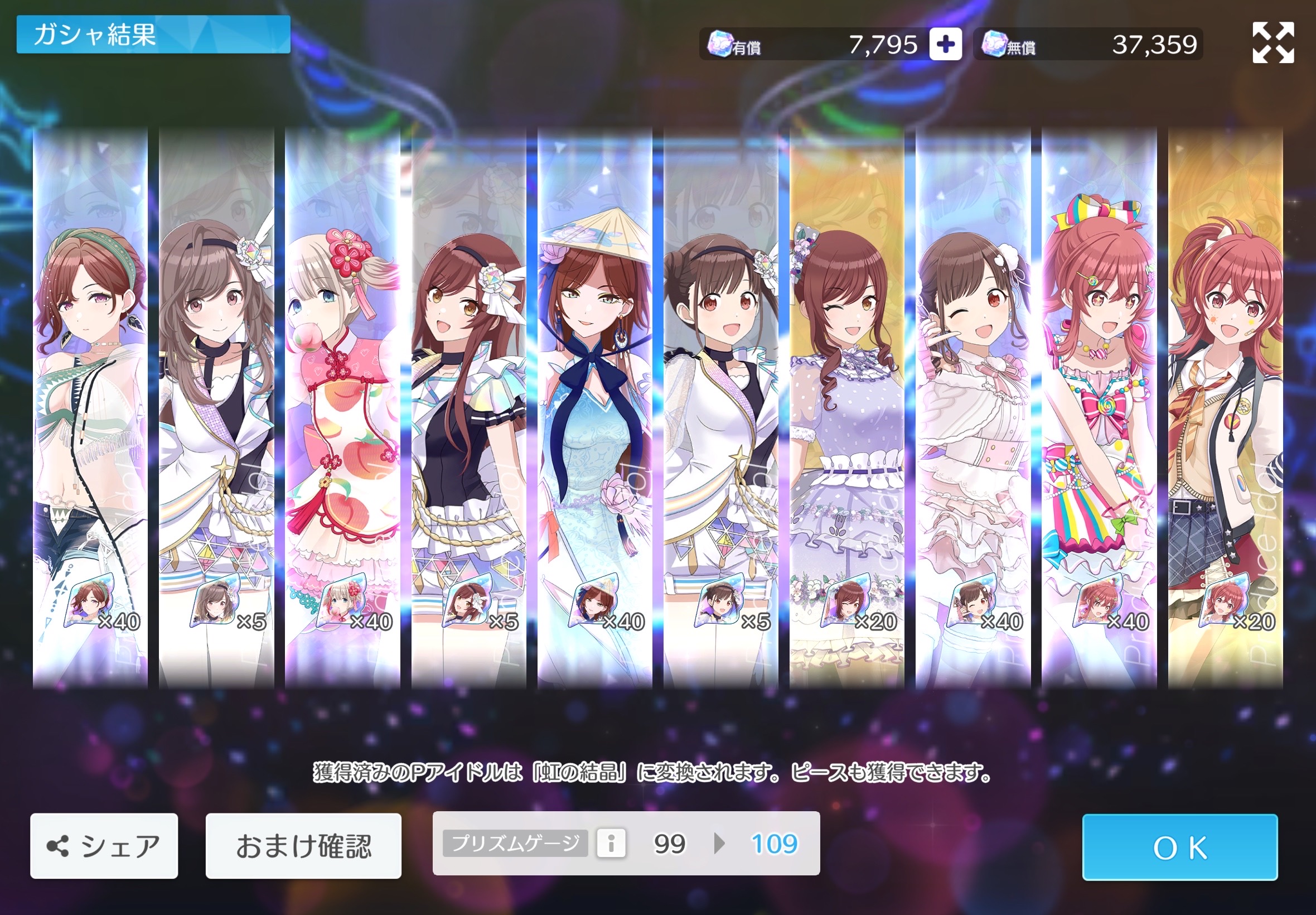 | … | 3726/02/22(日)00:23:48No.1404275298+ジャージガシャでssrが5つも出てきたんだけどこのガシャ別に排出率上がってたりはしないよね??? |