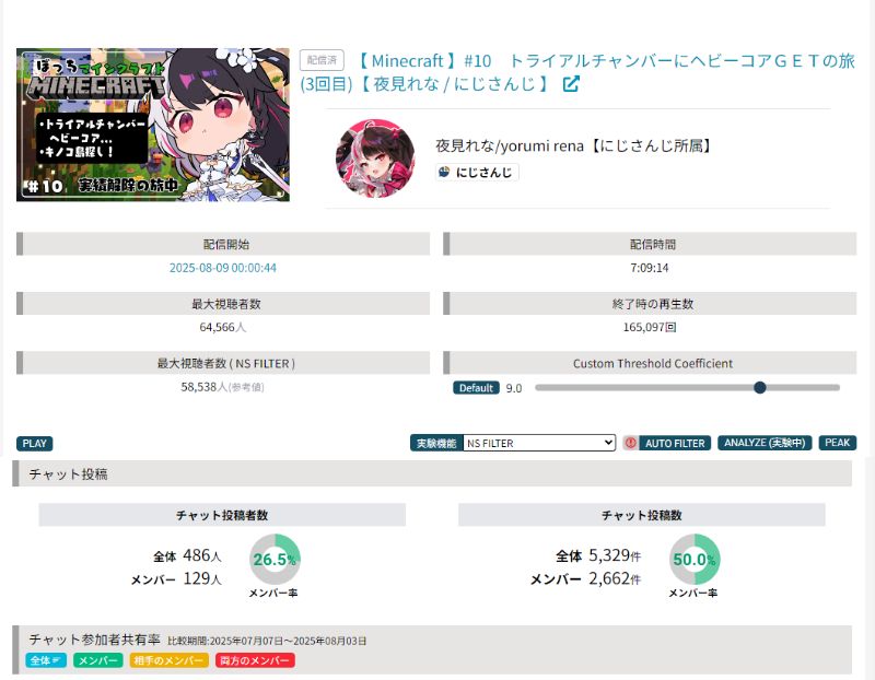 | … | 96126/02/22(日)04:41:11No.1404315242+>>高評価数とコメント数って同接数の何割くらいになるのが普通なの? |