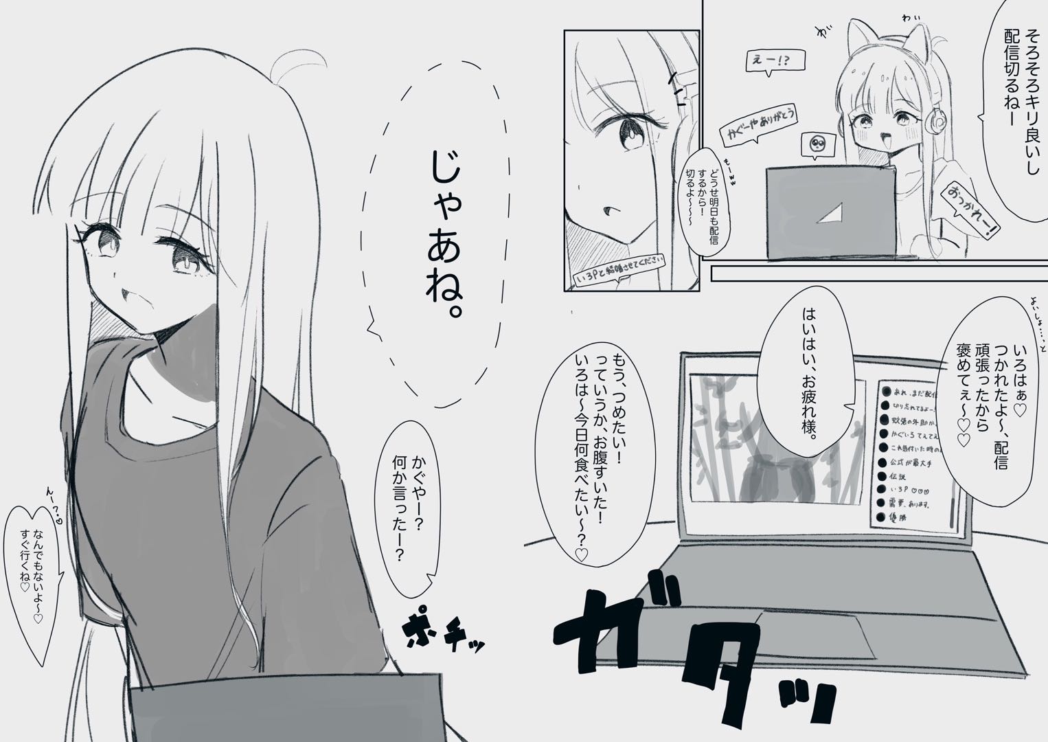 | … | 1326/02/22(日)08:10:14No.1404327137+かぐやは配信切り忘れと見せかけていろはとイチャイチャするのを絶対見せつけるって確信がある |