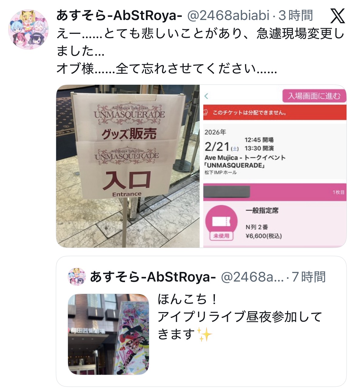 | … | 626/02/22(日)09:28:48No.1404347463+公演中止でアニメ継続の発表あるかないのかわからんくなった… |