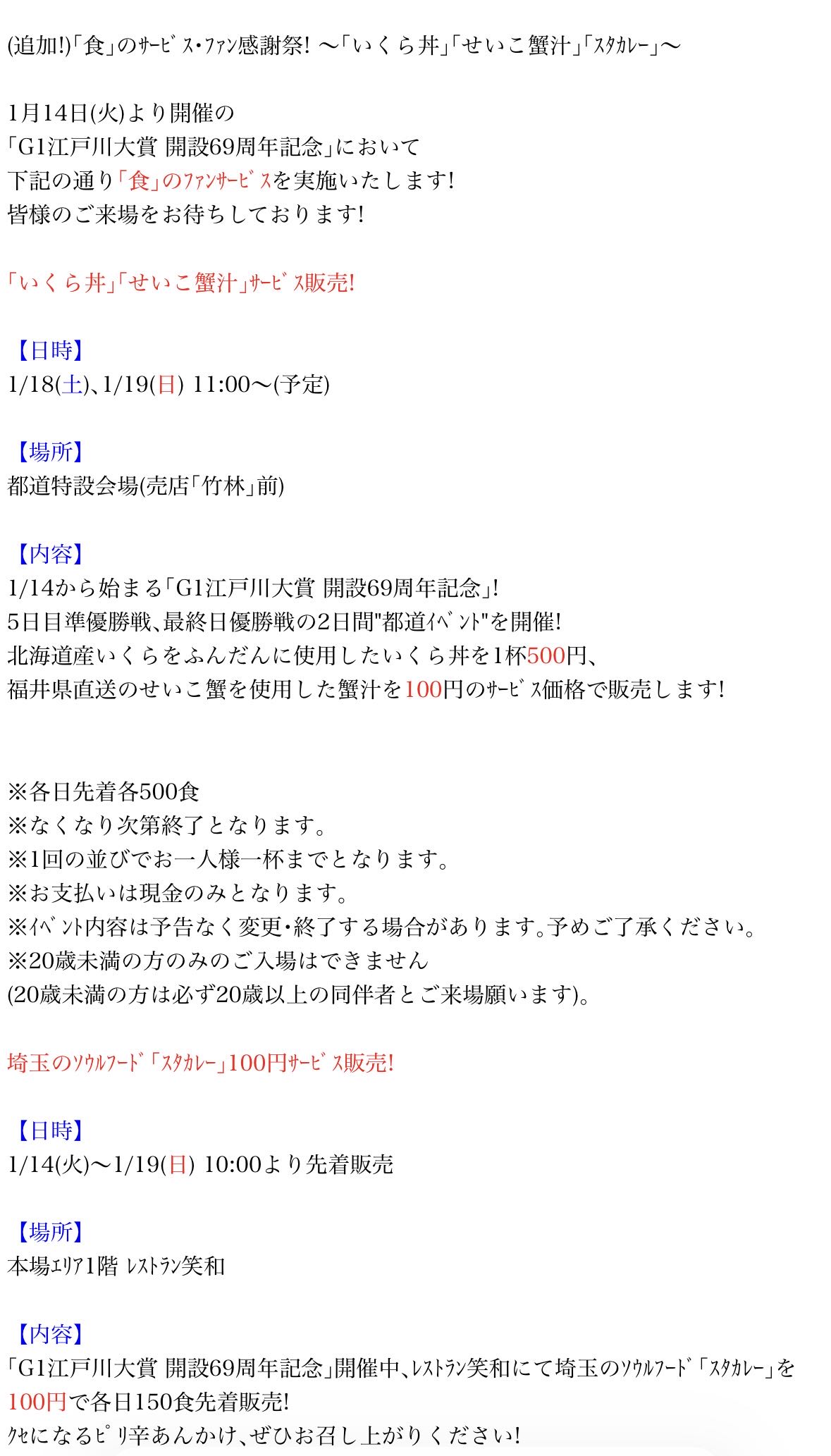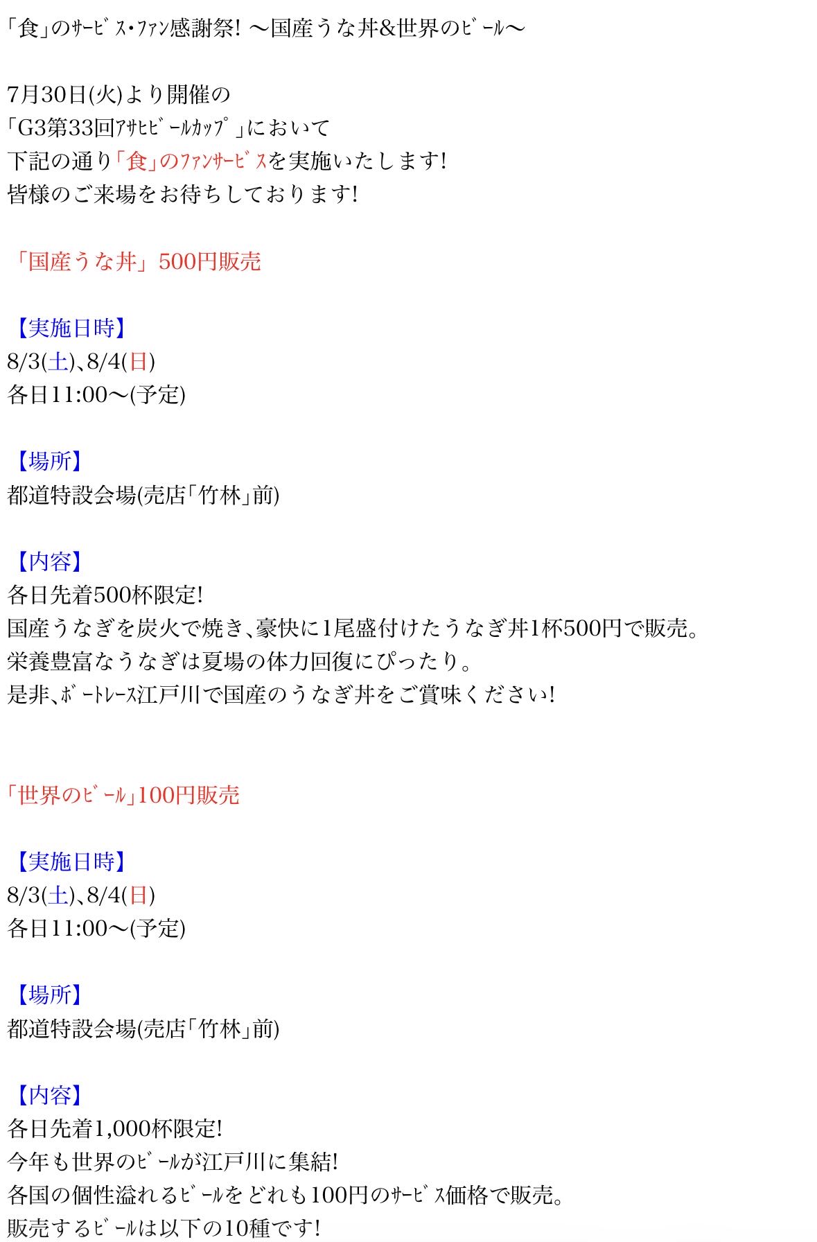 | … | 9326/02/22(日)12:14:55No.1404388709+これボートレース江戸川恒例の行事で開催日はだいたいやってるよ ビール1杯100円の日もある |
