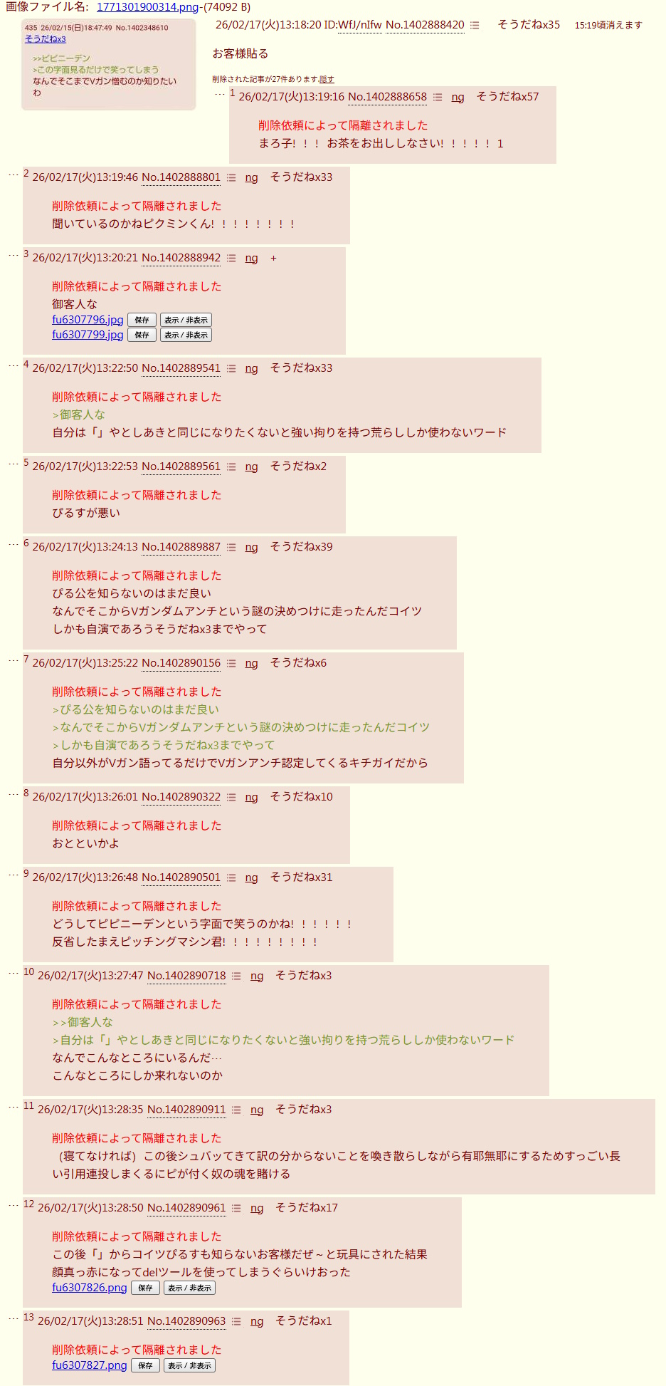 | … | 30126/02/22(日)14:02:32No.1404419091+>>削除依頼によって隔離されました |