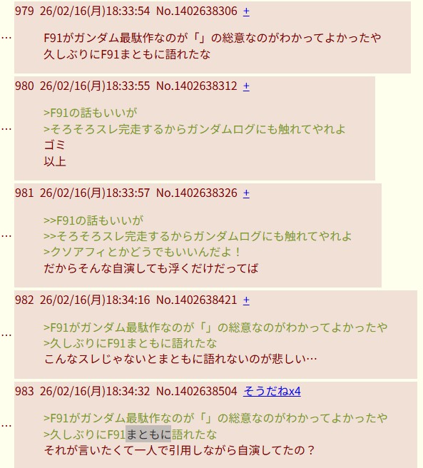 | … | 5126/02/22(日)13:00:00No.1404401141そうだねx4>F91自体がバカみたいでは? |