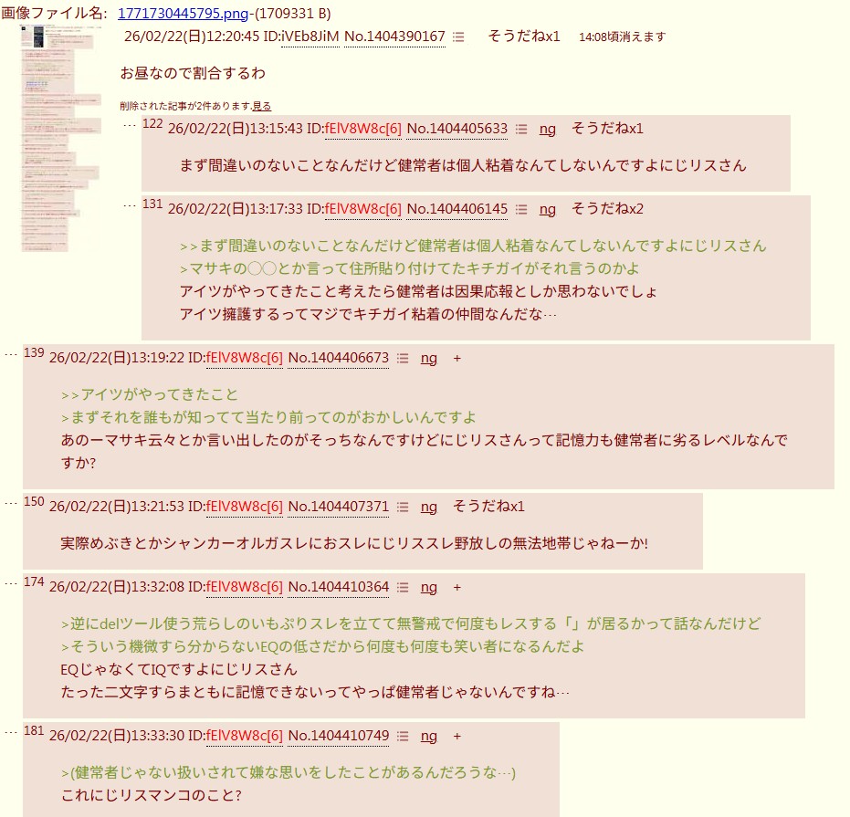 | … | 21426/02/22(日)13:38:21No.1404412172そうだねx4>スレ豚が単発って言われただけでキレるのは |