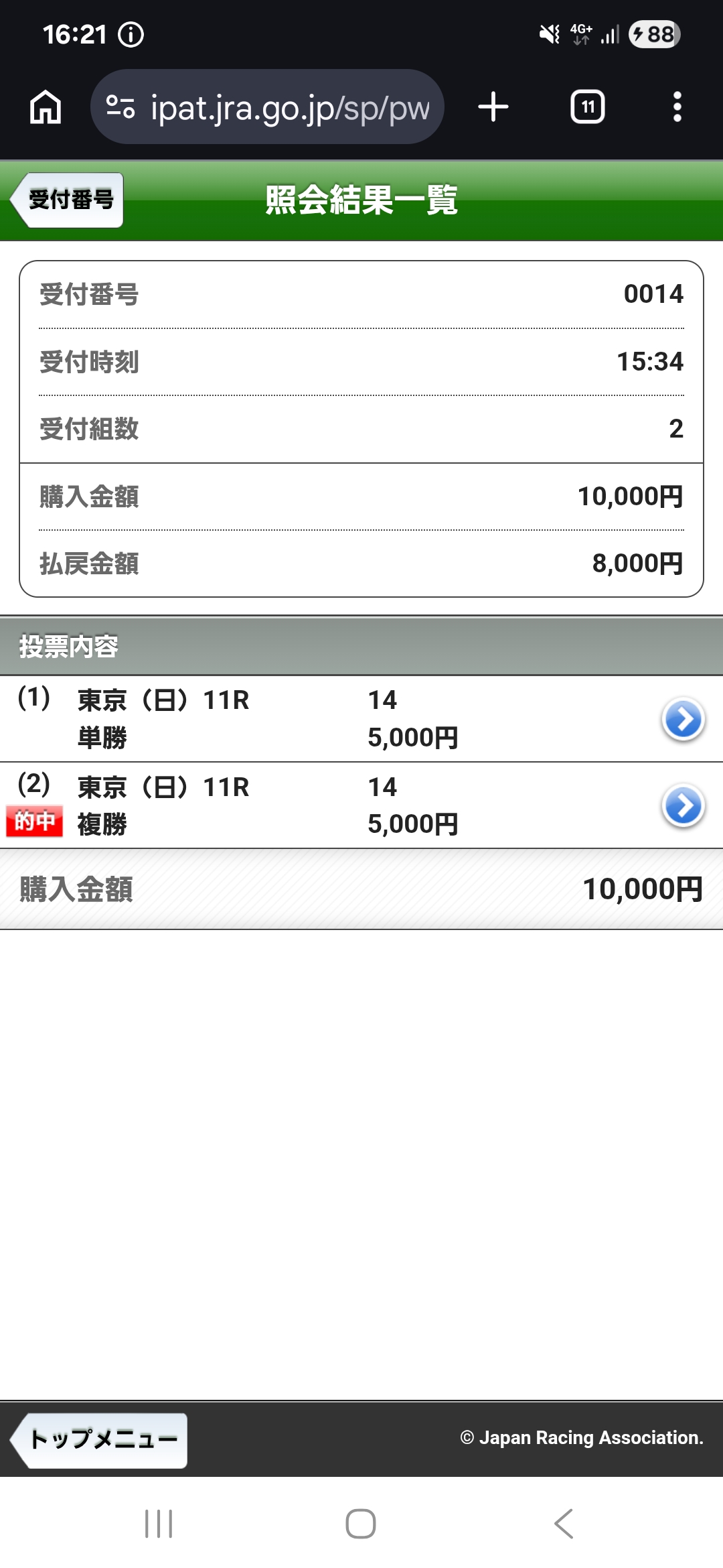 | … | 926/02/22(日)15:57:56 ID:a2AYHcUMNo.1404451809そうだねx1カッチカチの三連複でしたけど勝ちは勝ちです |