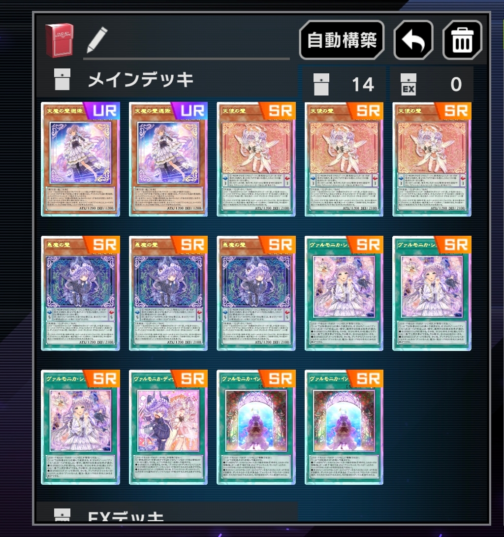 | … | 6026/02/22(日)17:28:35No.1404478536そうだねx2>ファイメナアルザリオンケートゥ1枚ずつロイヤル持ってるのちょっと自慢 統一感なさ過ぎて蕁麻疹出そうなデッキだ… |