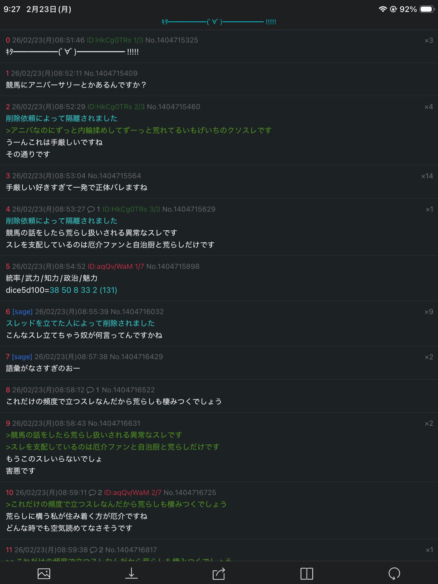 | … | 2126/02/23(月)09:03:14No.1404717509そうだねx2最近競馬スレがずっとIDで立てろだの📞をバカにするなだの意味わからん自治厨の声で荒らされてます |