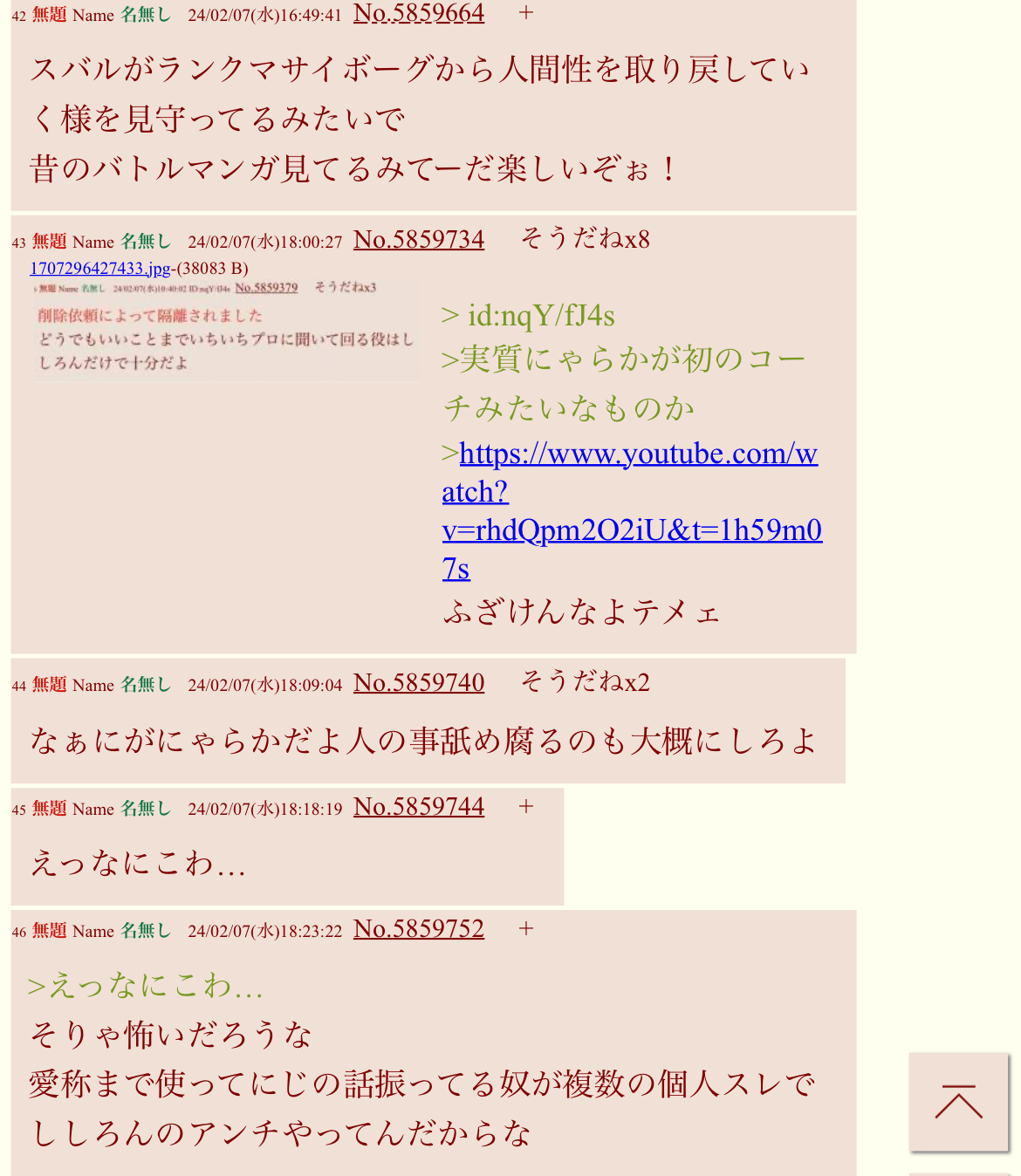 | … | 7026/02/23(月)18:37:37No.1404865473+>>>おそらくホロ板から追い出される決定打になった一件 |