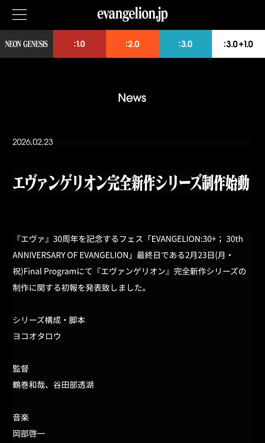 | … | 2526/02/23(月)19:16:03No.1404879280+https://www.evangelion.jp/news/260223-1/ |