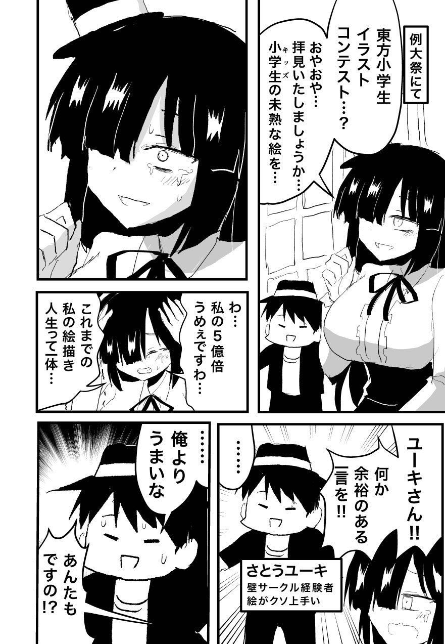 | … | 5626/02/23(月)19:56:14No.1404897846そうだねx1>小学生のころから東方やらゆっくりに染まるのは危険な気がする |