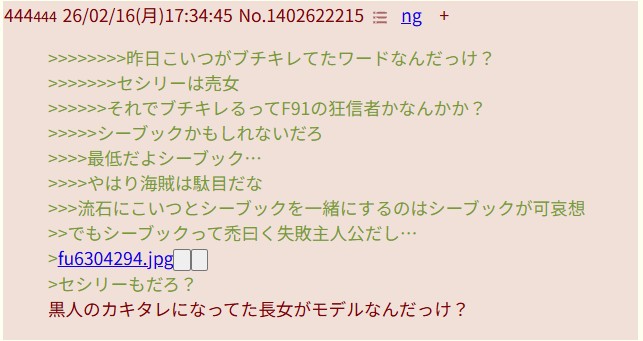 | … | 9526/02/23(月)22:28:14No.1404980499+>セシリーは売女 |
