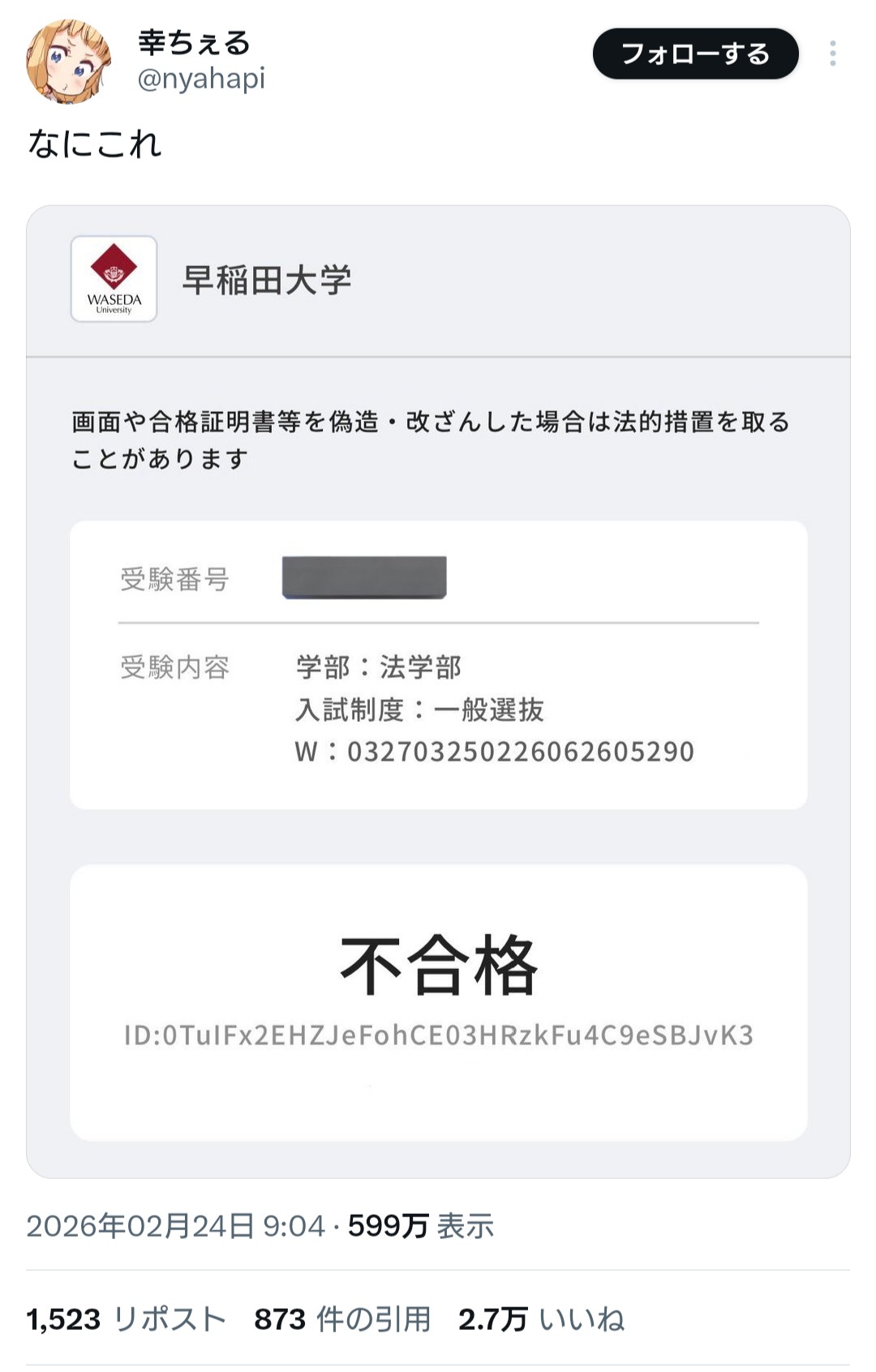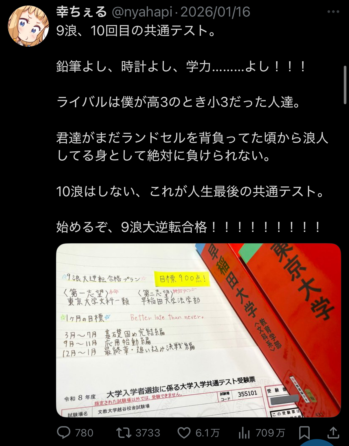 年一で早稲田記念受験して数回投稿するだけでこれくらいバズるならコスパ良いまであるわな