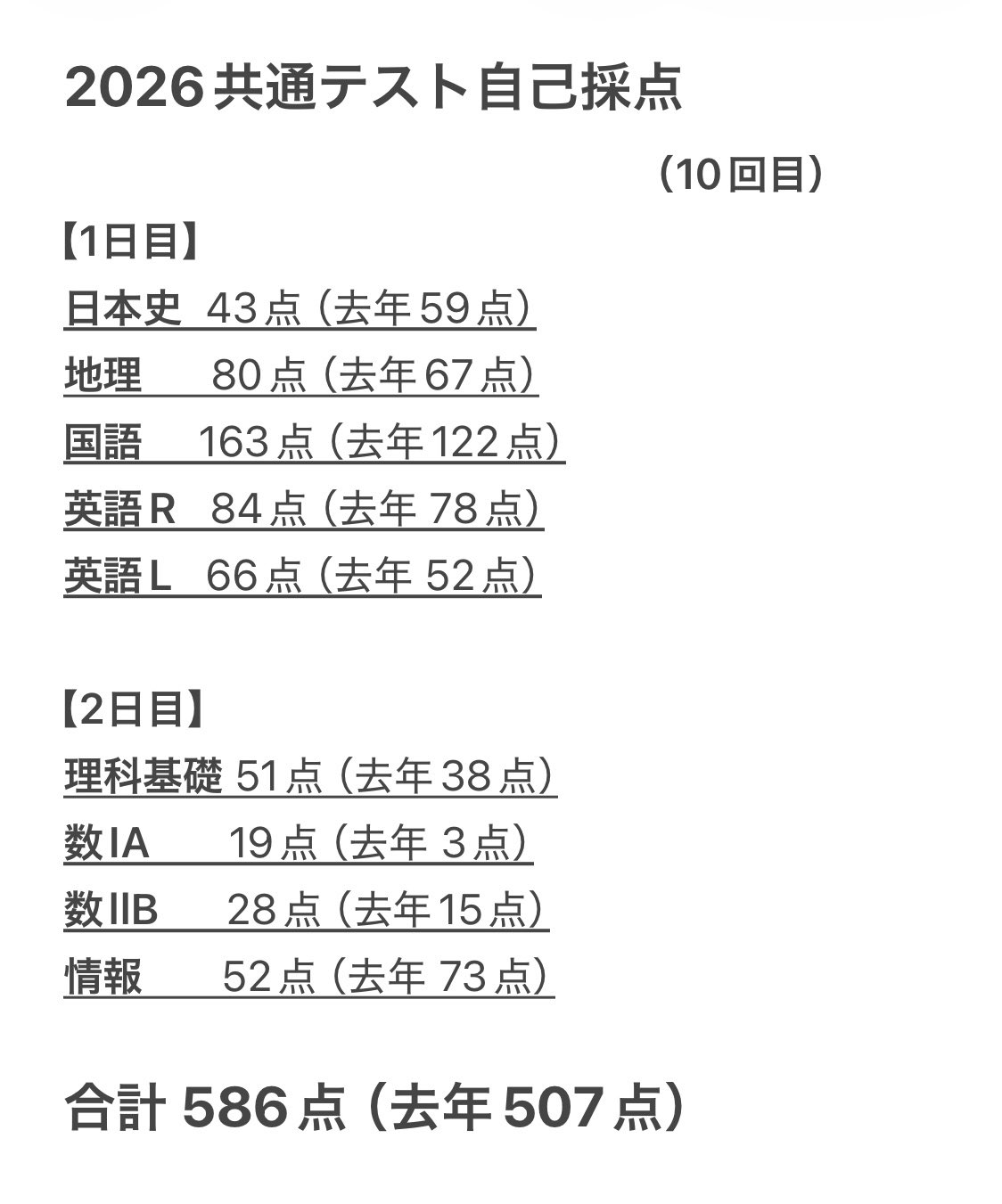 ちなみに東大は去年から足切りラインを上げたからどの科類も足切り突破が難しくなってる