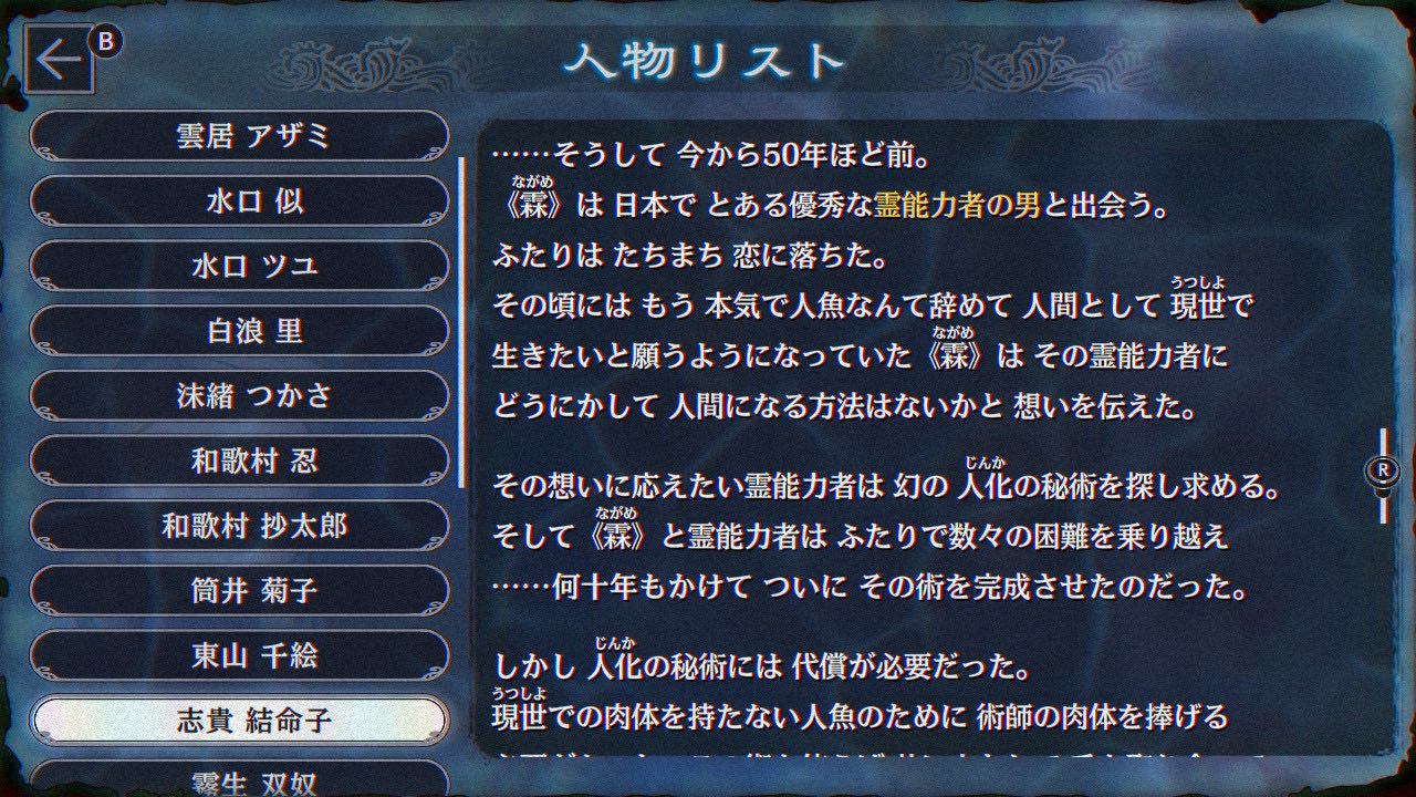 | … | 49626/02/24(火)19:17:59No.1405203579+おかみさんに人魚の名前を打ち込んで記憶を取り出すんだな… |