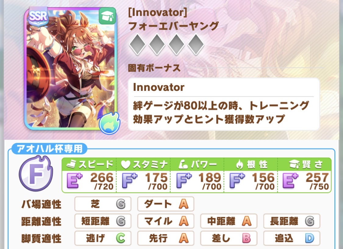 | … | 426/02/24(火)21:04:10No.1405243282そうだねx1ディザイアもダートBマイルAだしエバヤンは謎の逃げDだし査定甘め |