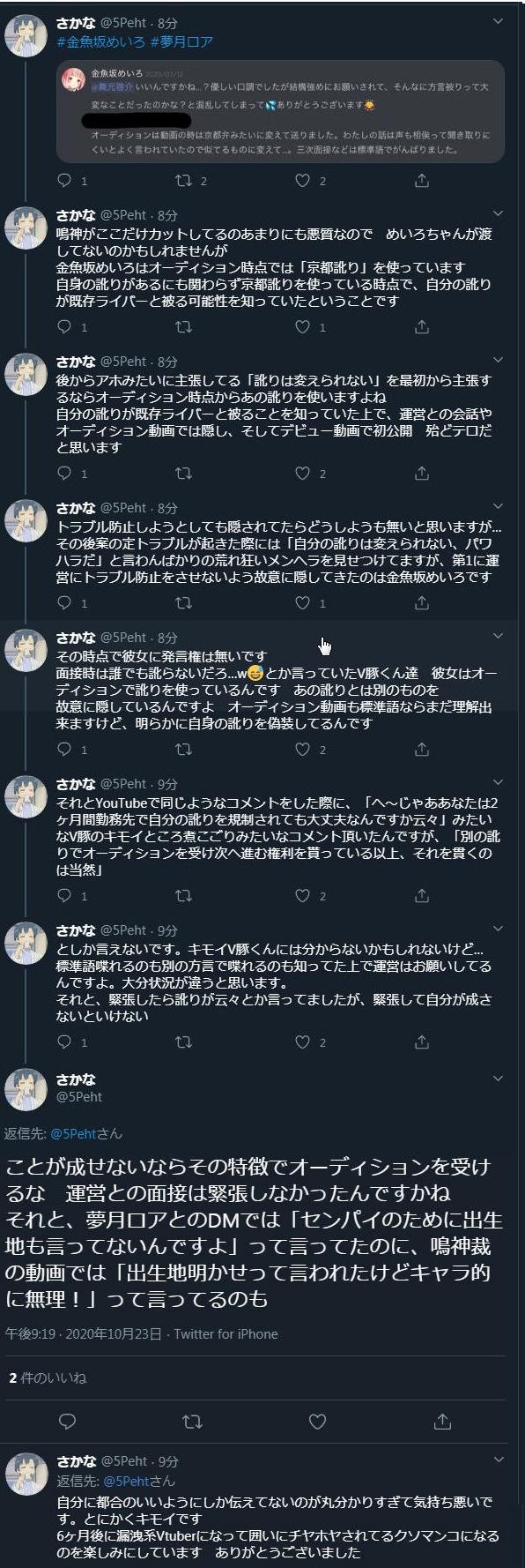 | … | 59126/02/25(水)00:15:41No.1405318781+>>>今日ずっと伸びてるVのスレ、いつになくVァーが必死で擁護してると思ったらあれホロライブ側に不利なやらかしなのか |