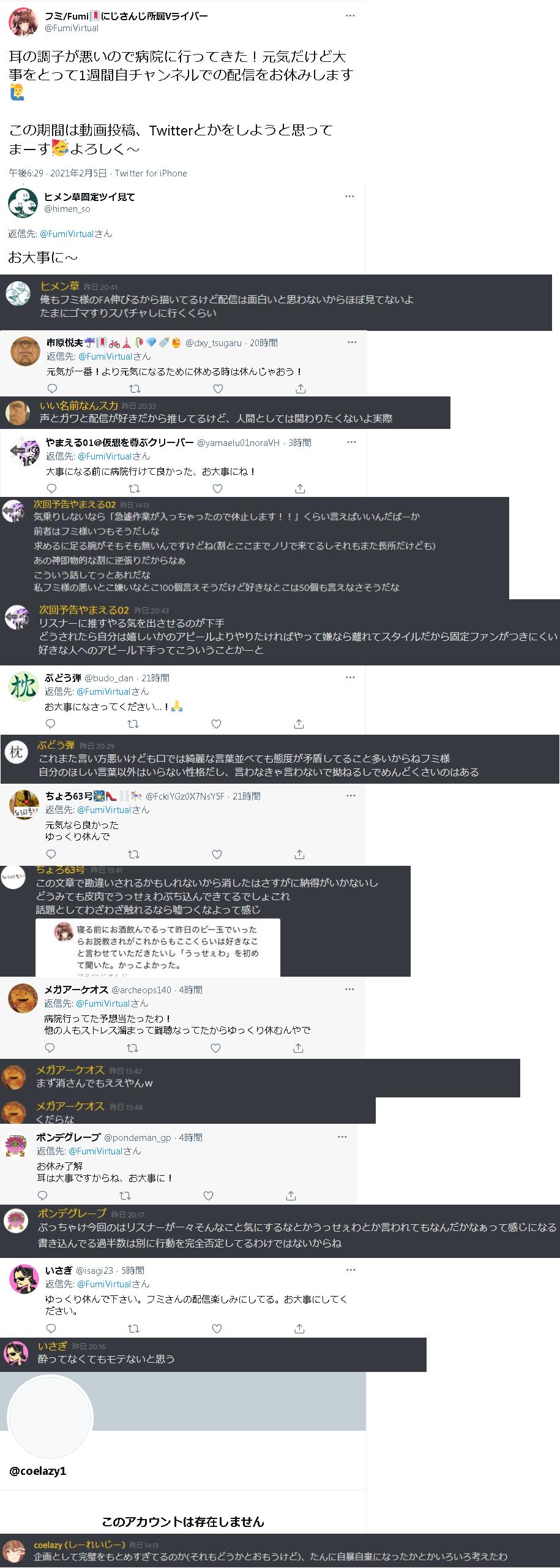 | … | 3426/02/24(火)23:21:16No.1405298816そうだねx9捏造してまで誹謗中傷してるカスが何人も居るの普通に頭が痛いな… |