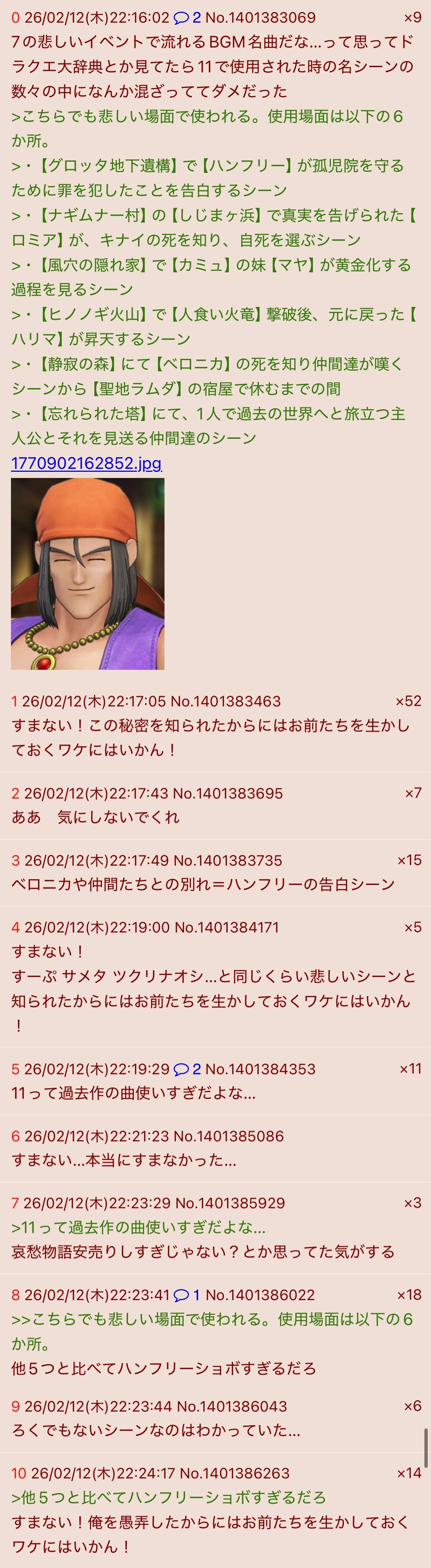 | … | 9826/02/25(水)08:39:13No.1405361270+ハンフリーが居たから堀井さんがドラクエを作る事が出来た |