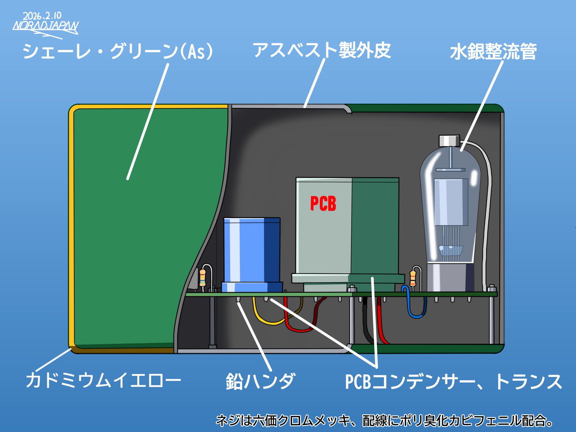 | … | 126/02/25(水)02:25:10No.1405341975そうだねx25国内だと鉛はんだも六価クロムメッキも現役だけどな! |