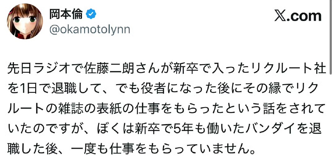 | … | 5826/02/25(水)15:12:40No.1405435787そうだねx1> https://x.com/okamotolynn/status/1940960923201818736 |