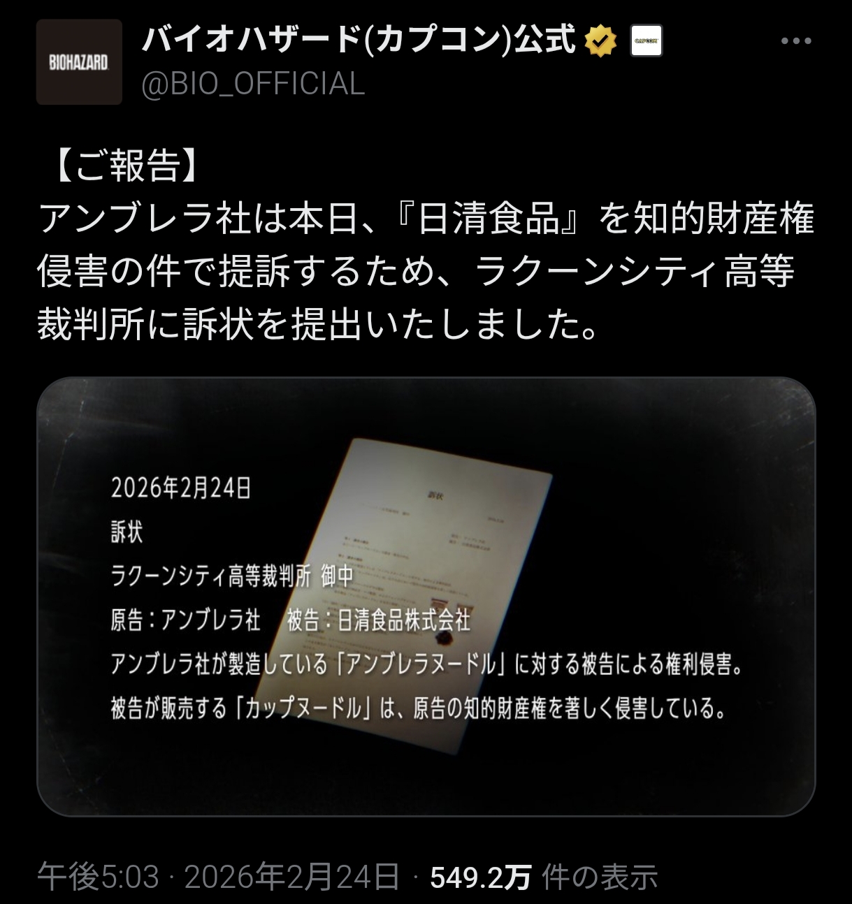 | … | 226/02/25(水)18:47:58No.1405485873そうだねx1アンブレラ社は2004年に潰れたはずだが |