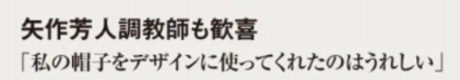 | … | 3426/02/25(水)20:58:02 ID:eZyvUhOQNo.1405534305+1歳馬の彼は、JRHAセレクトセールにて調教師矢作芳人の目に留まり、9800万円で落札。「私の帽子をデザインに使ってくれたのはうれしい」と矢作は語った。 |