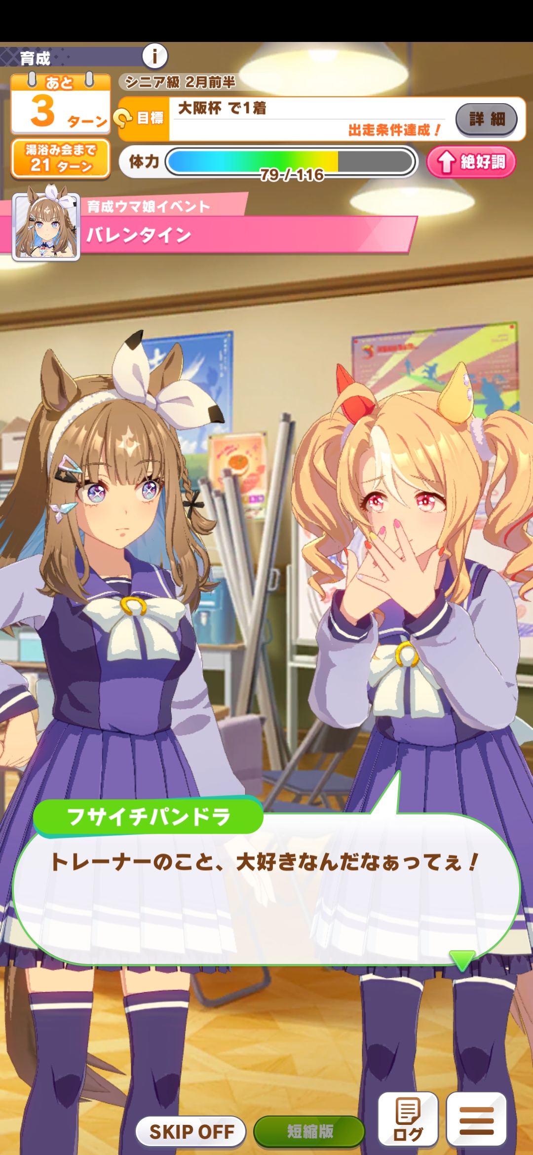 | … | 14226/02/25(水)21:29:27 ID:NLEXOfxgNo.1405546244+>休日ダラダラ寝ているところをアイちゃんに叩き起こされたいですね…なんでアイちゃんが私の部屋にいるんですか 他のウマ娘ちゃん連れ込んでる日じゃなくて良かったですね |