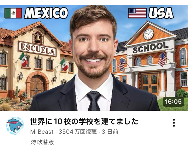| … | 4126/02/25(水)21:32:19No.1405547325+>ミスタービーストの動画実際面白いから流行るのも当然 |