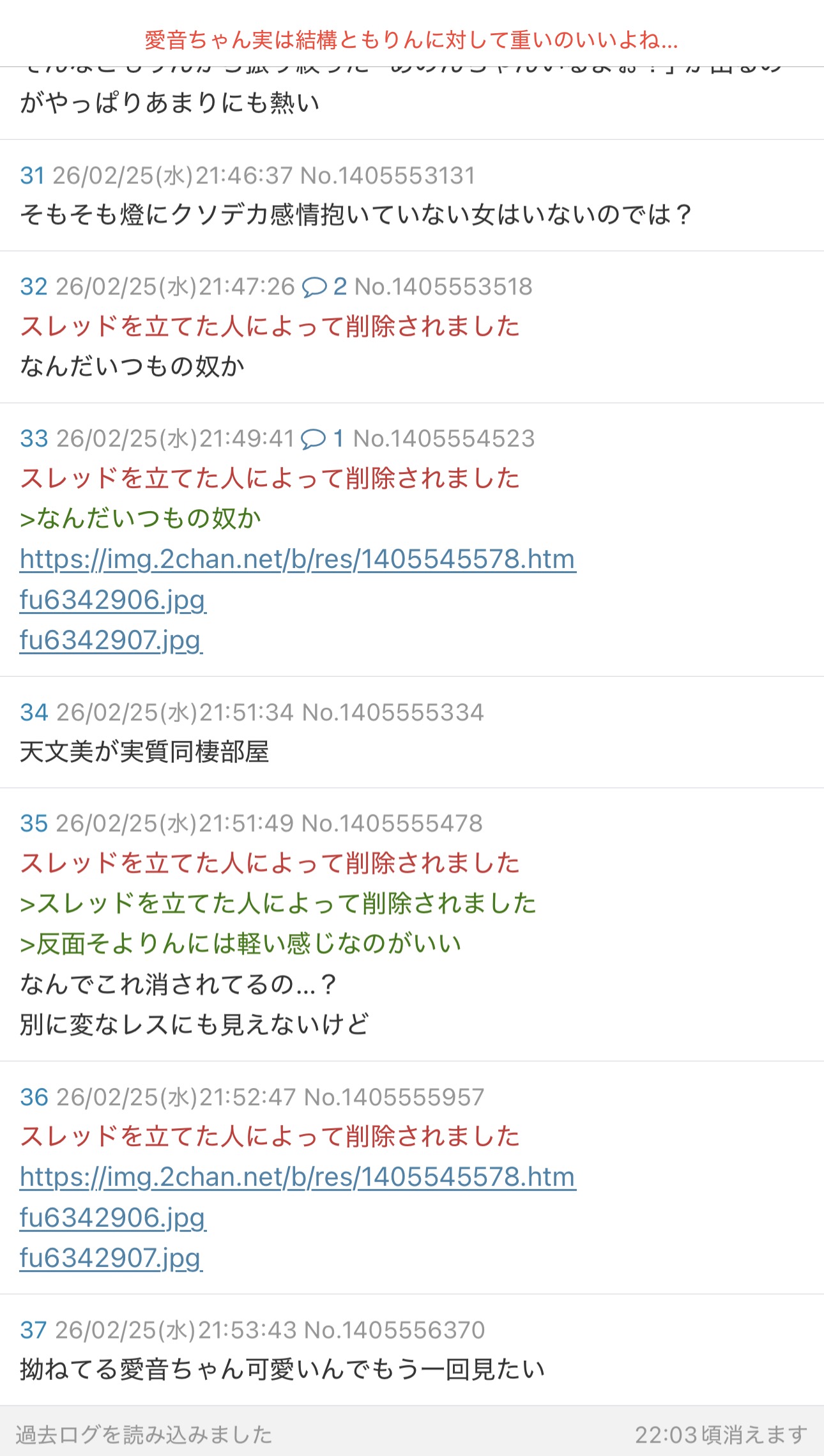 | … | 2726/02/25(水)22:32:05No.1405572972+スレッドを立てた人によって削除されました |