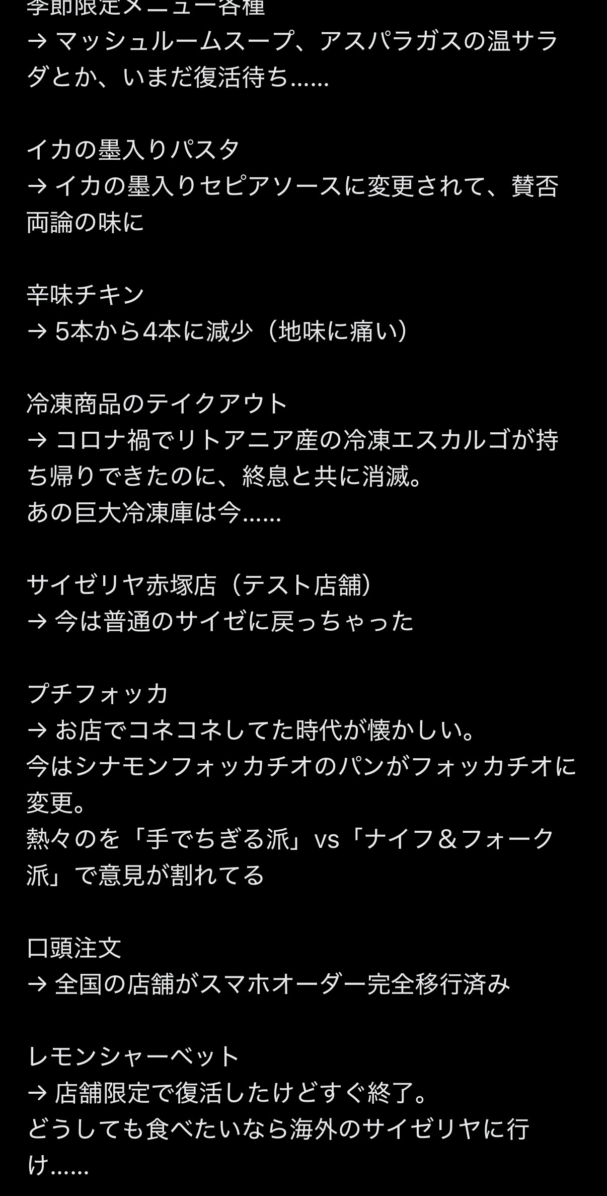 サイゼから亡くなったもの一覧このスレは古いので、もうすぐ消えます。