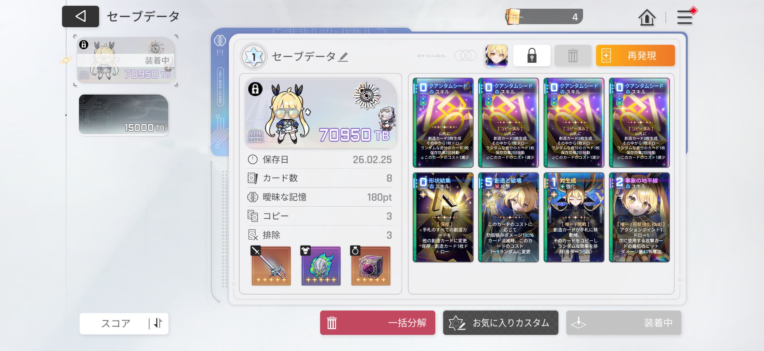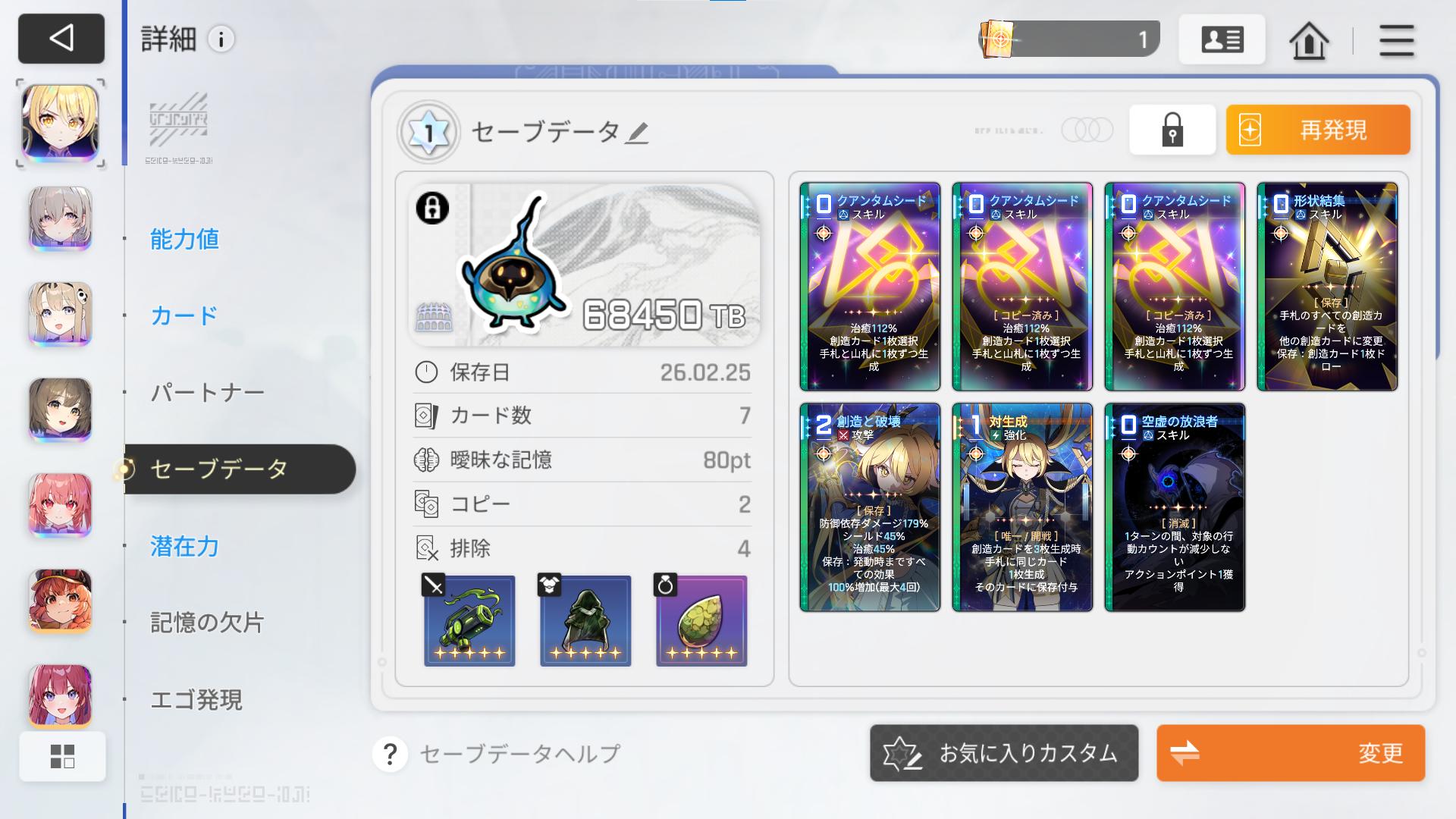| … | 10126/02/26(木)00:27:13No.1405612498+>ティペラはAPがゼロになったら0コス創造と破壊を生成してくれるやつが地味に使いやすすぎる…… |