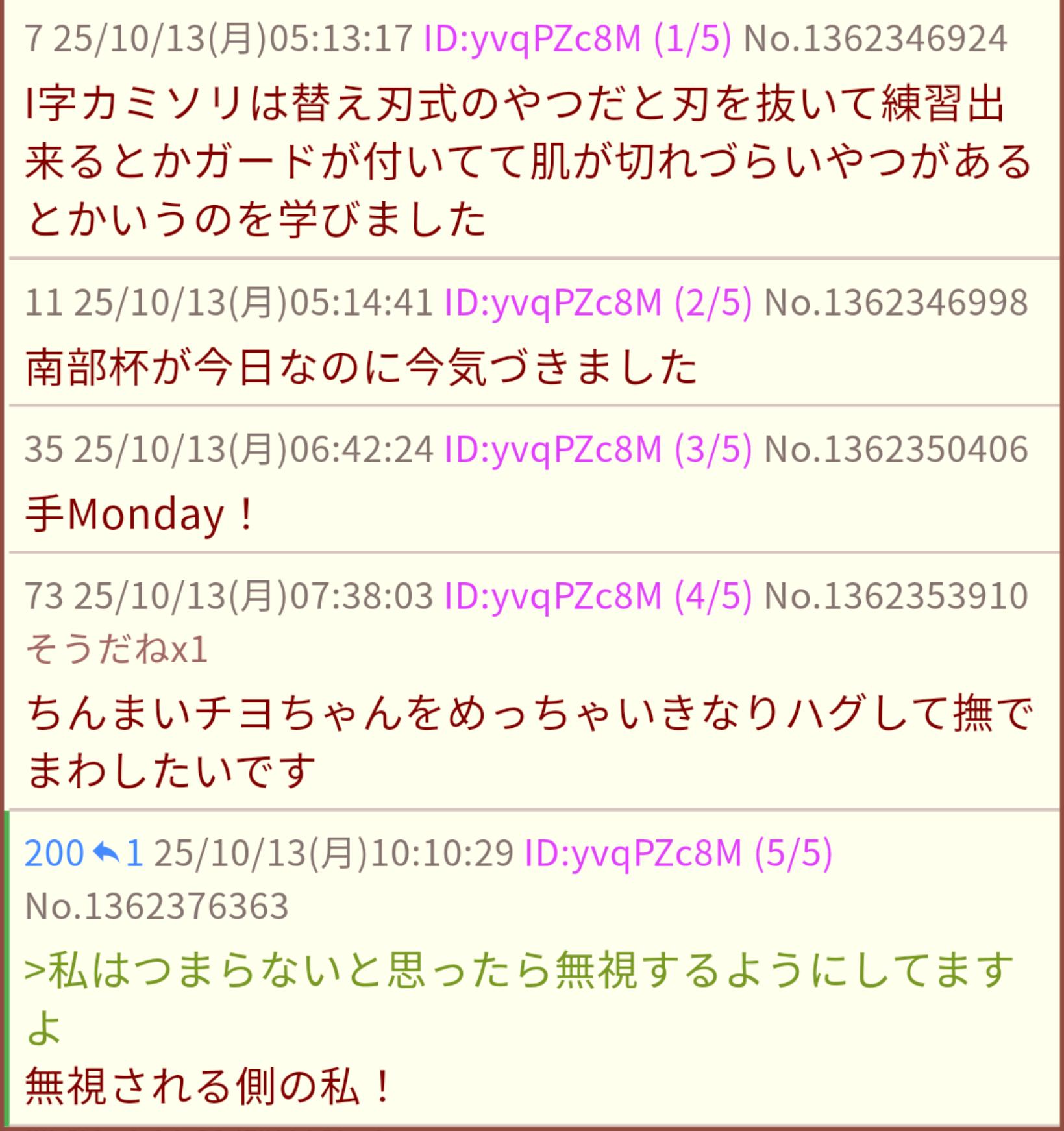 | … | 8526/02/26(木)11:17:38 ID:vcIClHtgNo.1405688404+私は今日お休みです |