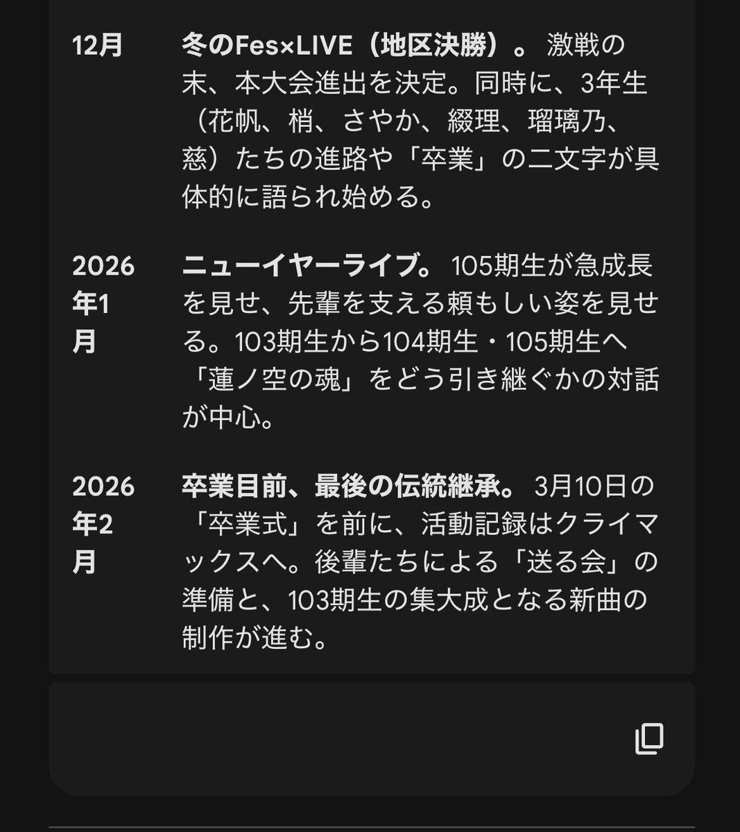 | … | 6426/02/26(木)12:37:21No.1405709051+花帆ちゃんがLinkLikeSystemを定義するってことは卒業したら崩壊するんですよ…? |