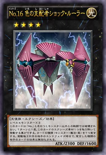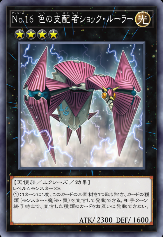 | … | 4426/02/26(木)15:36:00No.1405749364そうだねx6>なお、《No.16 色の支配者ショック・ルーラー》での魔法カード封殺、ペンデュラムゾーンを破壊しつつあわよくばサーチ・除去を行える《揺れる眼差し》、その《揺れる眼差し》を無効にする《Emダメージ・ジャグラー》等を投入するのも有効なメタとなる。 |