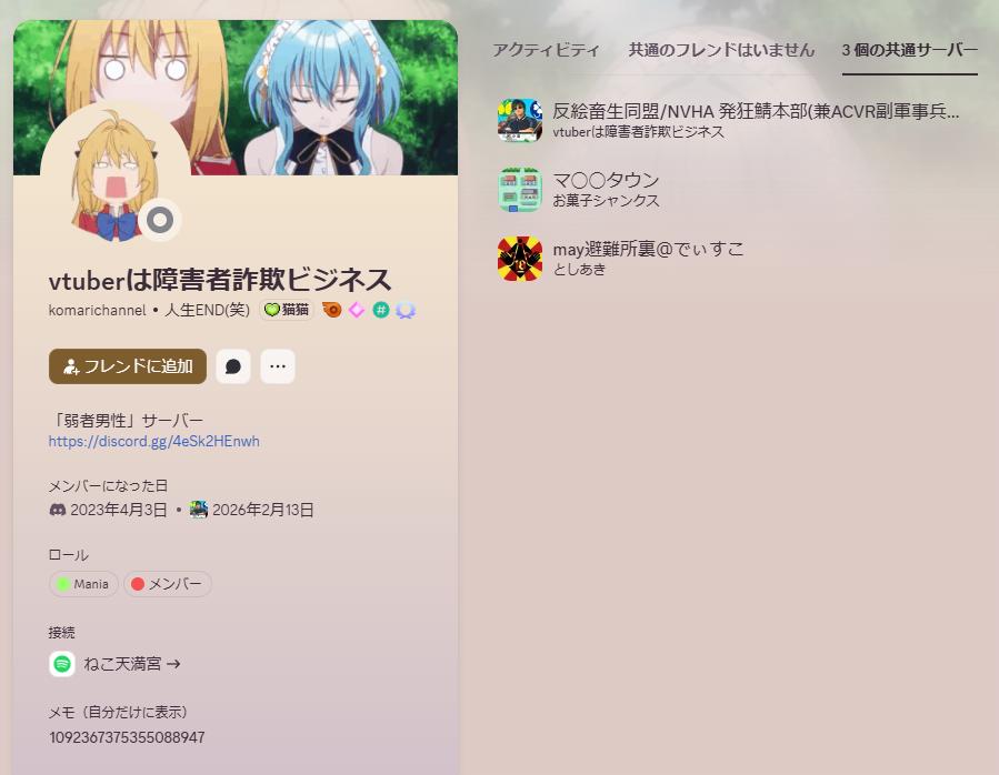 | … | 2526/02/26(木)17:41:08No.1405776940+>>>シャンクスDiscordの有名ネームド「お菓子シャンクス」 |
