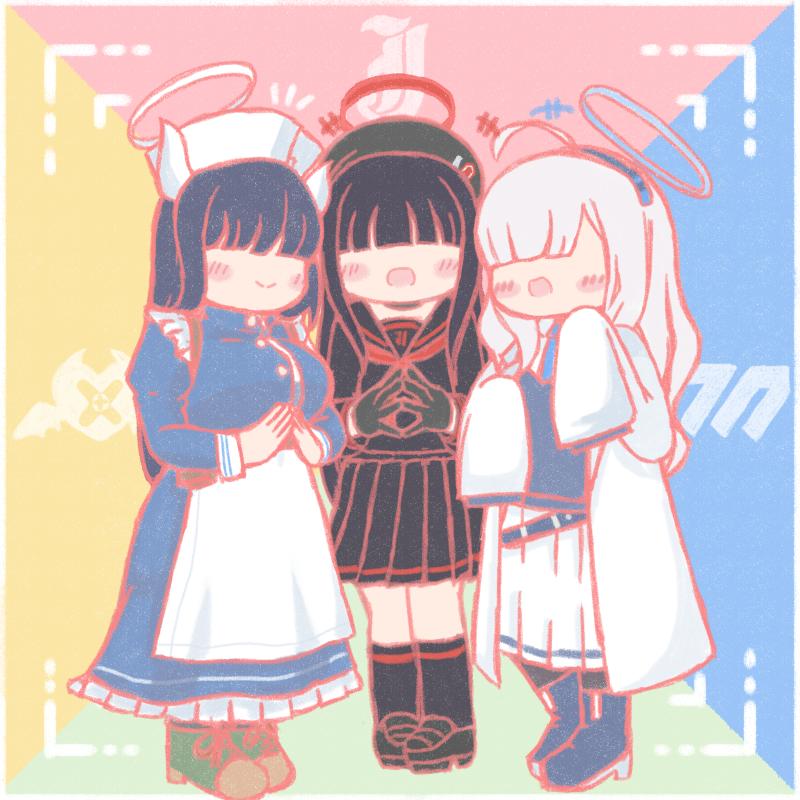 skebにブルアカのモブ3人のトークンカード風の絵を納品したのお裾分けです
