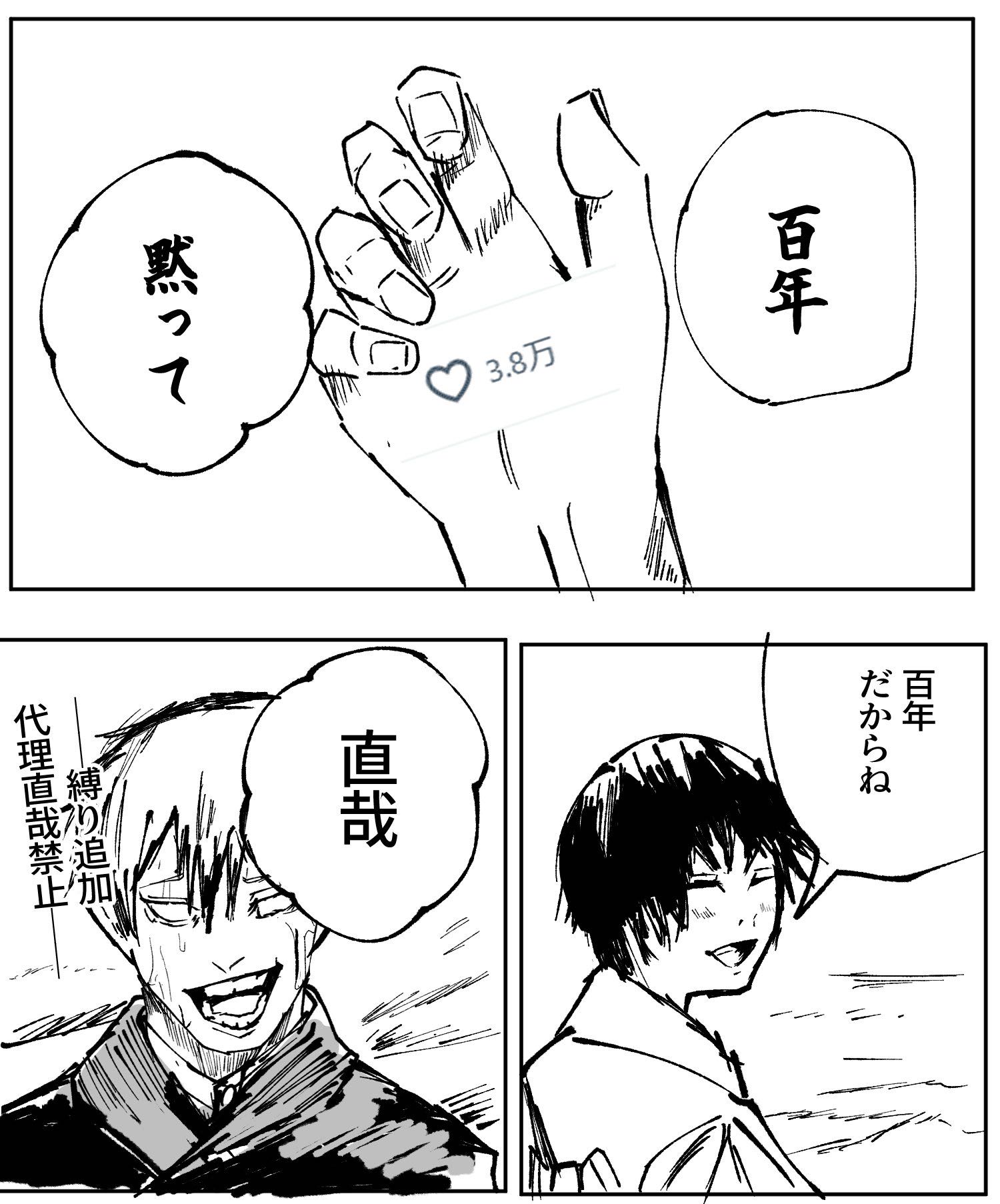 | … | 7626/02/26(木)18:36:23No.1405790828そうだねx5スレ画の漫画家の影響で呪術スレ側もインターネットミームに毒されているの呪物すぎるだろ |