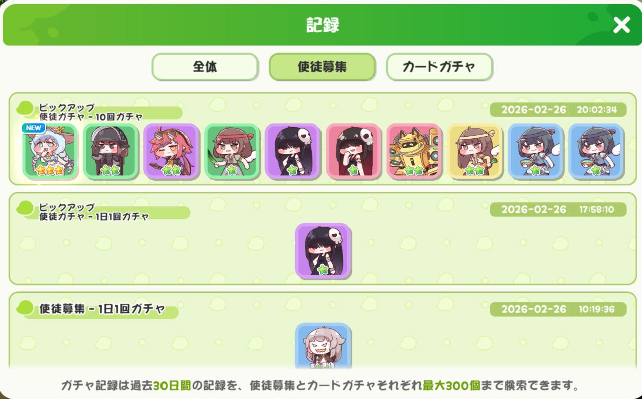 | … | 1226/02/26(木)18:58:59 ID:RAA4ErEANo.1405797247+使徒証交換できるの忘れて 200ポイントで交換してしまったにゃん |