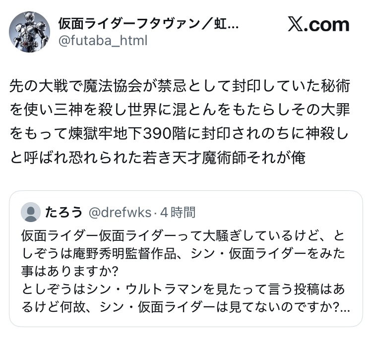 | … | 2626/02/26(木)20:28:22No.1405828443+特撮の粘着荒らしを自身の個性にするなんて悲しすぎるだろ |