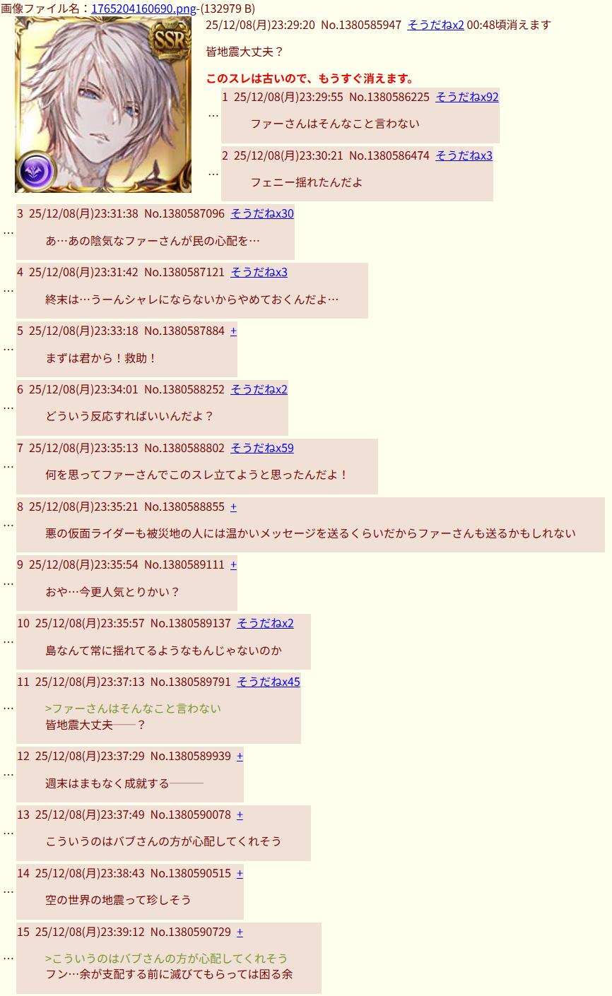 | … | 71826/02/26(木)22:49:26No.1405881182+>十二神将演技ネタイベかと思ったけど真面目な話やってたのか… |