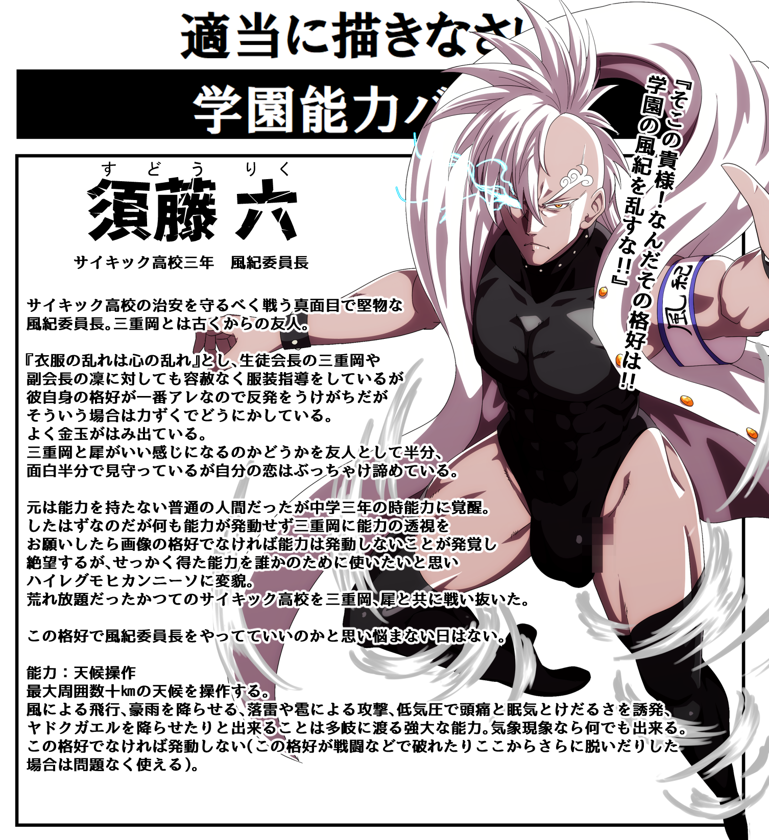| … | 726/02/26(木)23:13:07No.1405889455+周辺学園の不良行為を止めさせるために戦うサイキック番長と |