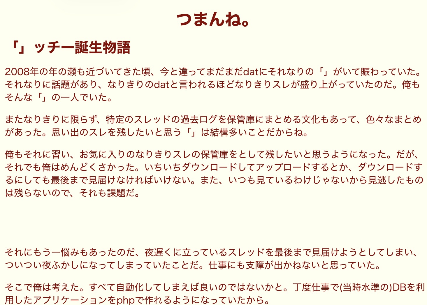 ッチーのトップ見てたら誕生物語なんてページが出来ていた
