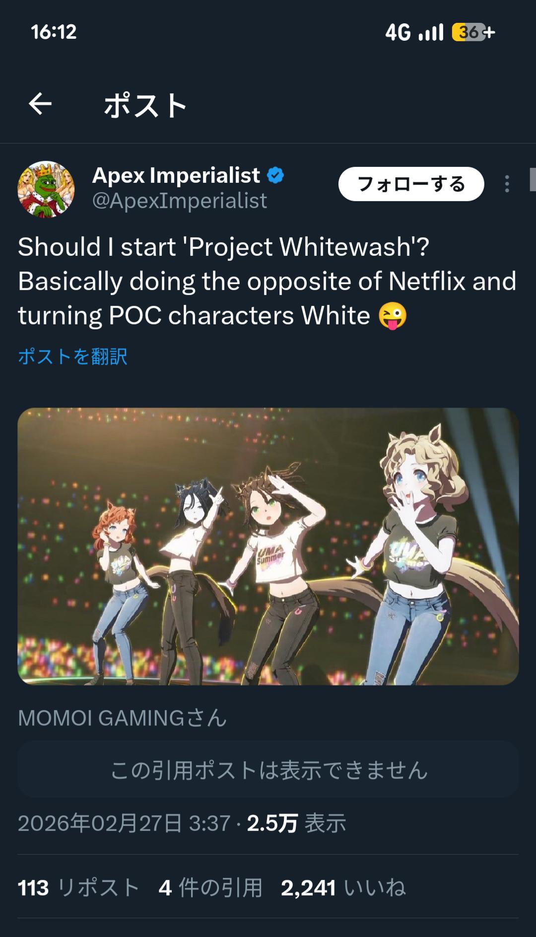 俺のメだと黒人ウマ娘はかわいいからいいねって感じの感想ばっかりだから果たして本当に騒ぎになっているのかすらわからん