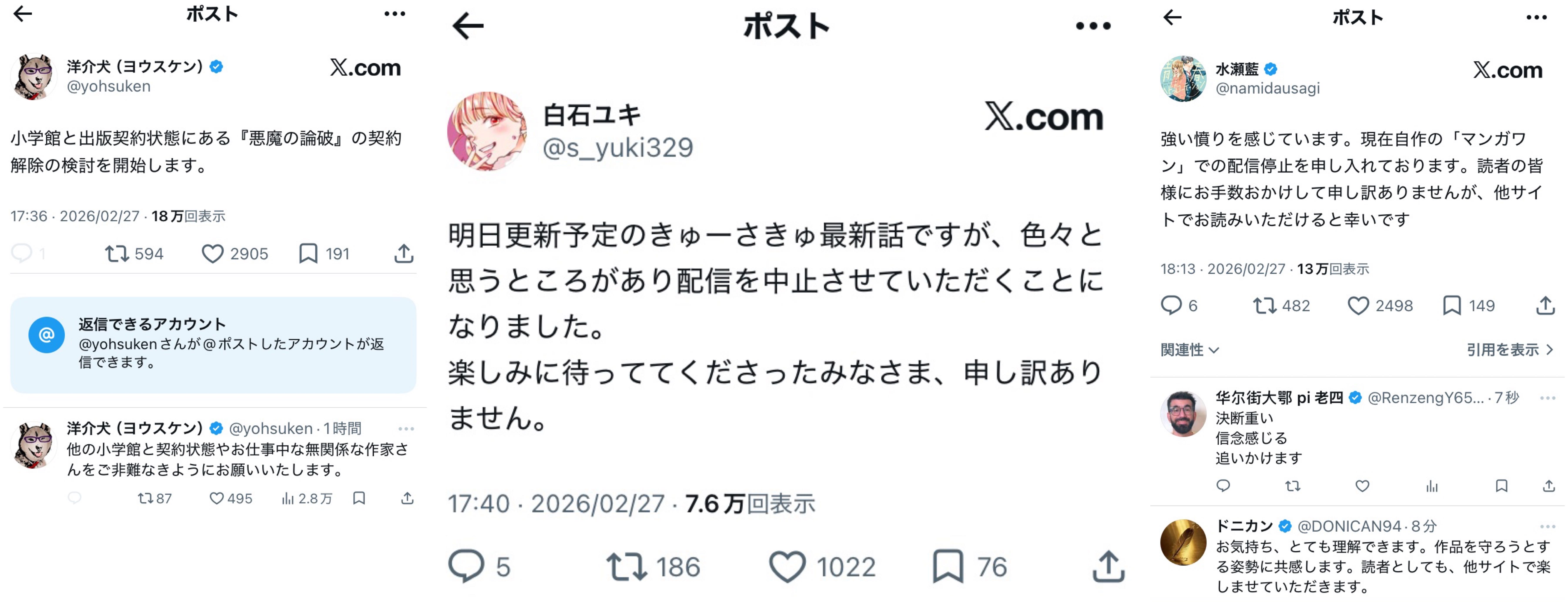 | … | 4926/02/27(金)20:09:40No.1406111863そうだねx7【速報】小学館、加害男性を別名で連載に起用 |
